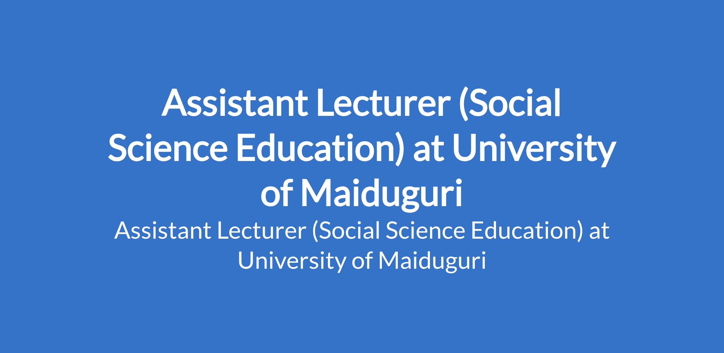 University of Maiduguri invites applications from suitable candidates to fill the position of: Assistant Lecturer (Social Science Education). The position is located in Borno State. Interested candidates should possess a Master's Degree from University of Maiduguri or another recognised institution or a First Class / Second Class Upper Degree with relevant professional qualification where applicable.