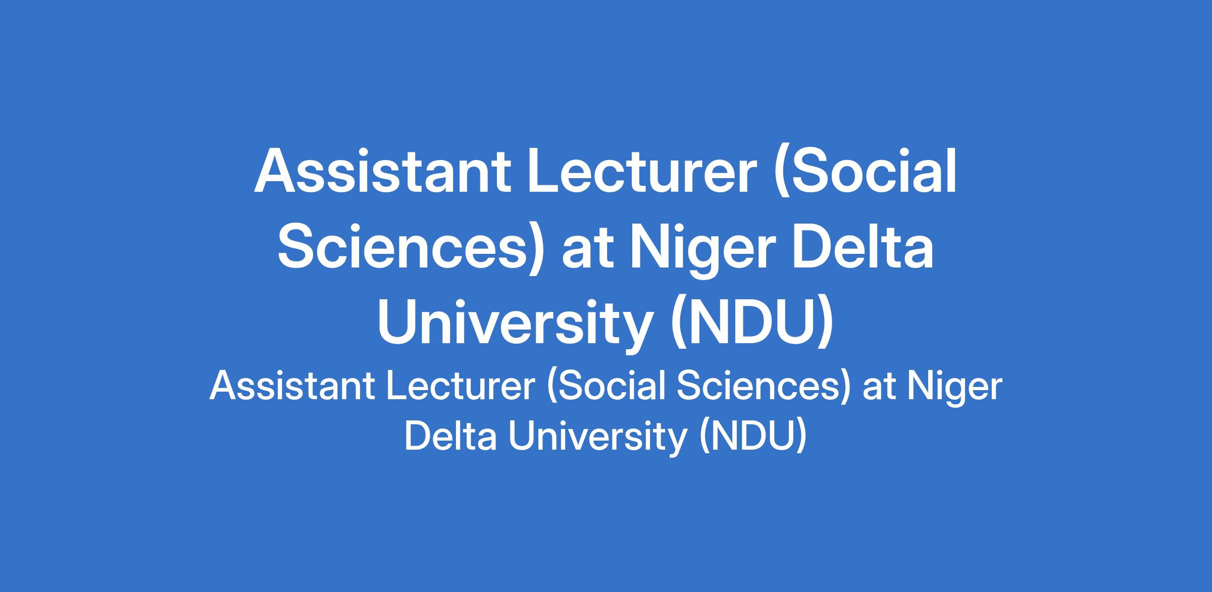 Niger Delta University (NDU) invites applications from suitably qualified candidates to fill the position of: Assistant Lecturer (Social Sciences). The position is located in Wilberforce Island, Bayelsa State. Interested candidates should possess a good First Degree not less than second class lower division plus a Masters Degree, or a Masters Degree with professional registration and must be registered on Google Scholar.