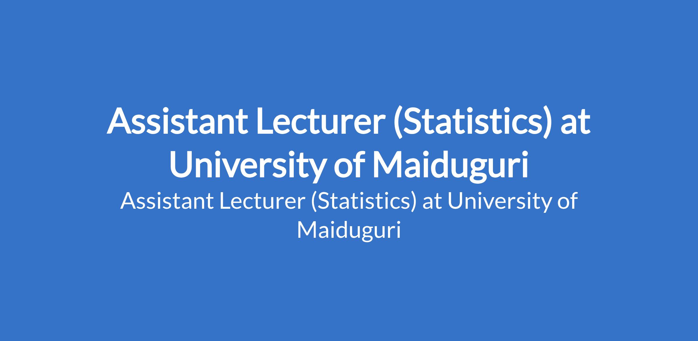 University of Maiduguri invites applications from suitable candidates to fill the position of: Assistant Lecturer (Statistics). The position is located in Borno State. Interested candidates should possess a Master's Degree from University of Maiduguri or another recognised institution or a First Class / Second Class Upper Degree with relevant professional qualification where applicable.