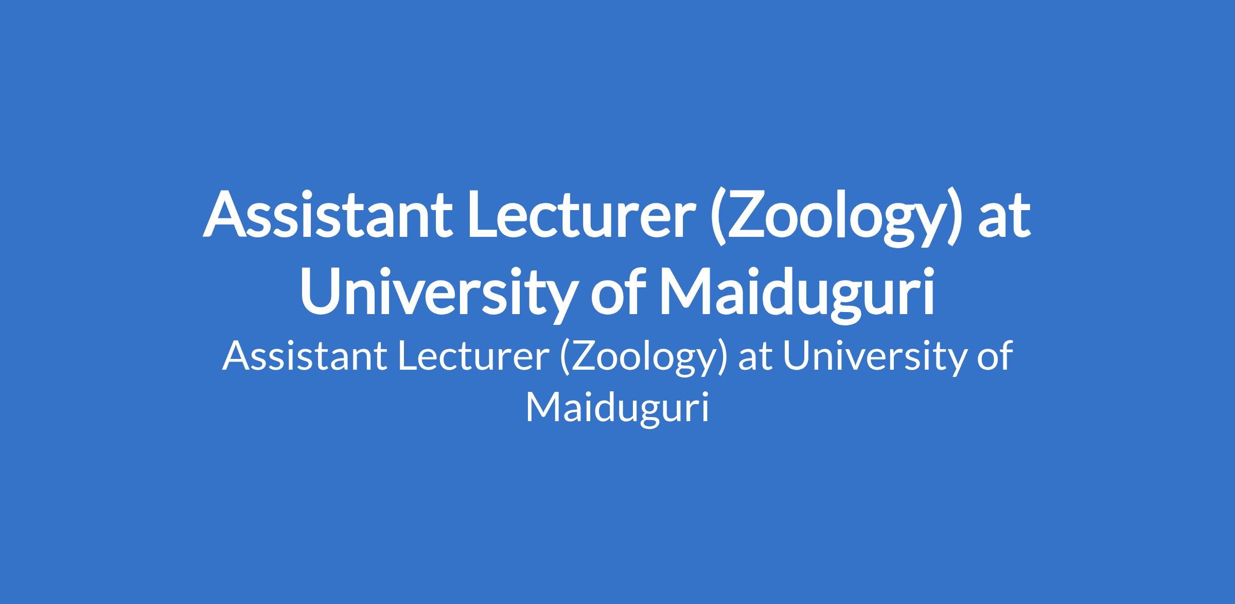 University of Maiduguri invites applications from suitable candidates to fill the position of: Assistant Lecturer (Zoology). The position is located in Borno State. Interested candidates should possess a Master's Degree from University of Maiduguri or another recognised institution or a First Class / Second Class Upper Degree with relevant professional qualification where applicable.