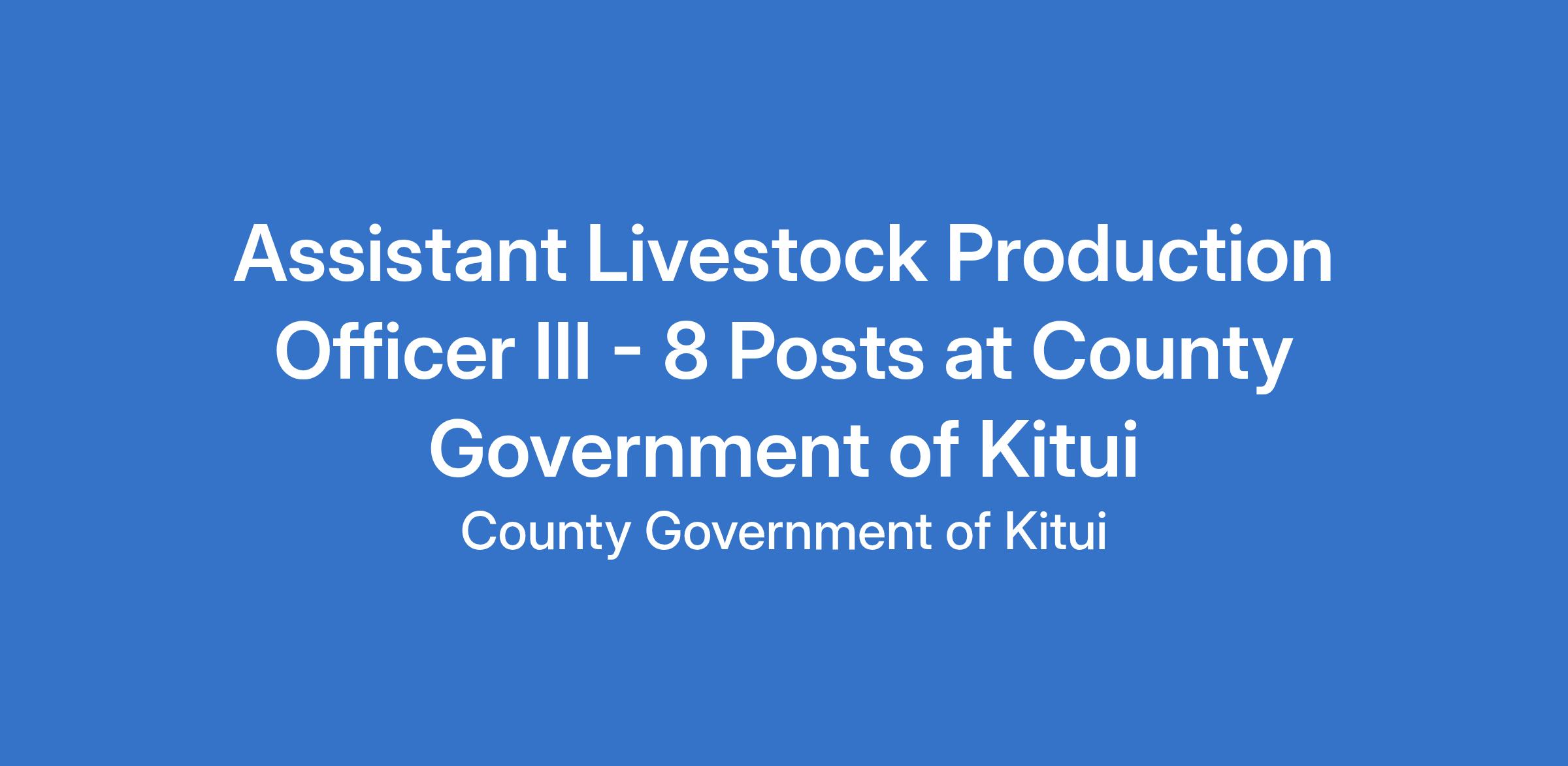 Diploma in any of the following fields: - Animal Production, Dairy Science and Technology, Animal Science, Agribusiness, Animal Health and Production, Farm Management, Apiculture or Range/Natural Resource Management from a recognized institution; and