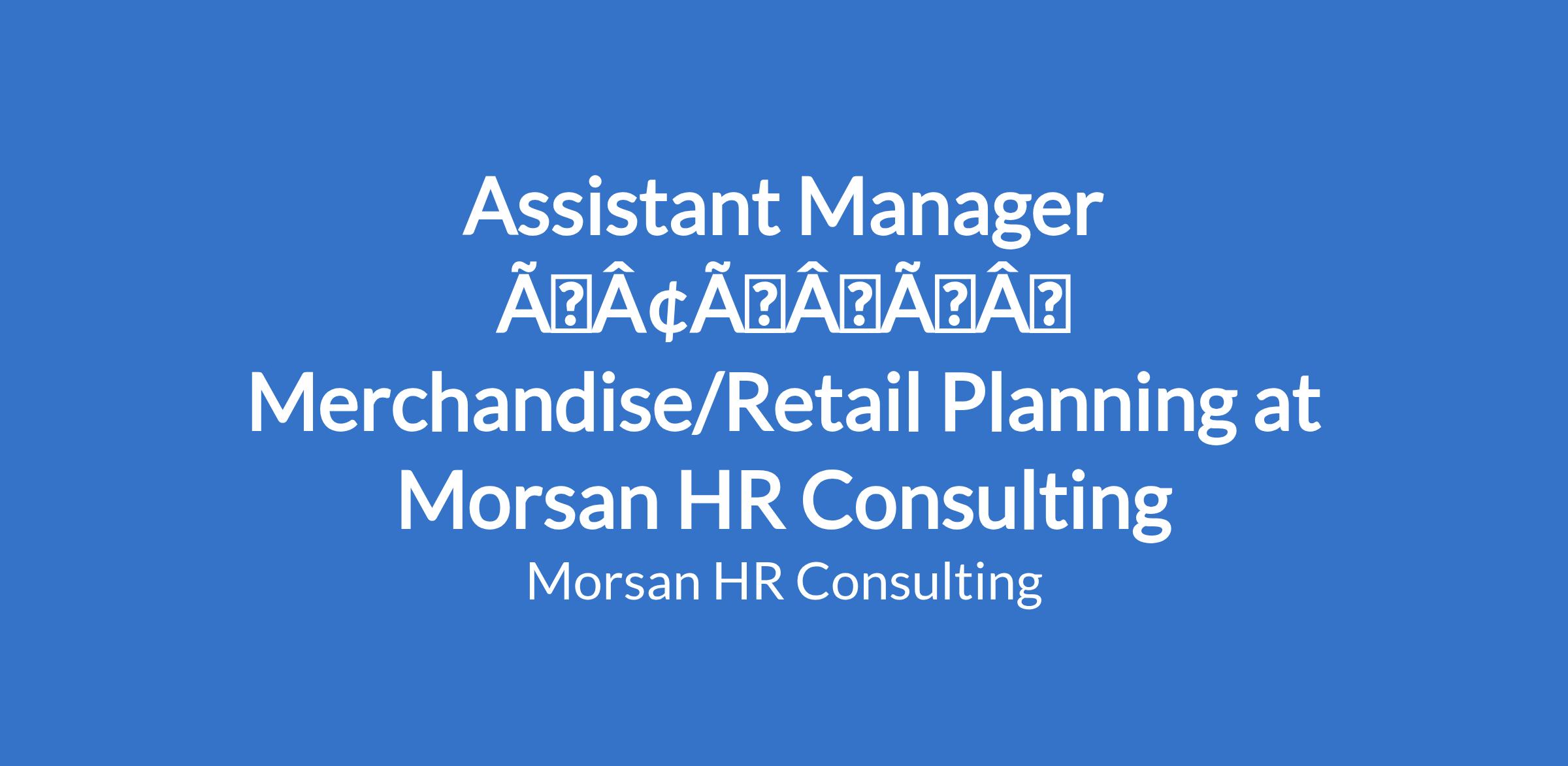 Assistant Manager âÃÂàMerchandise/Retail Planning at Morsan HR Consulting