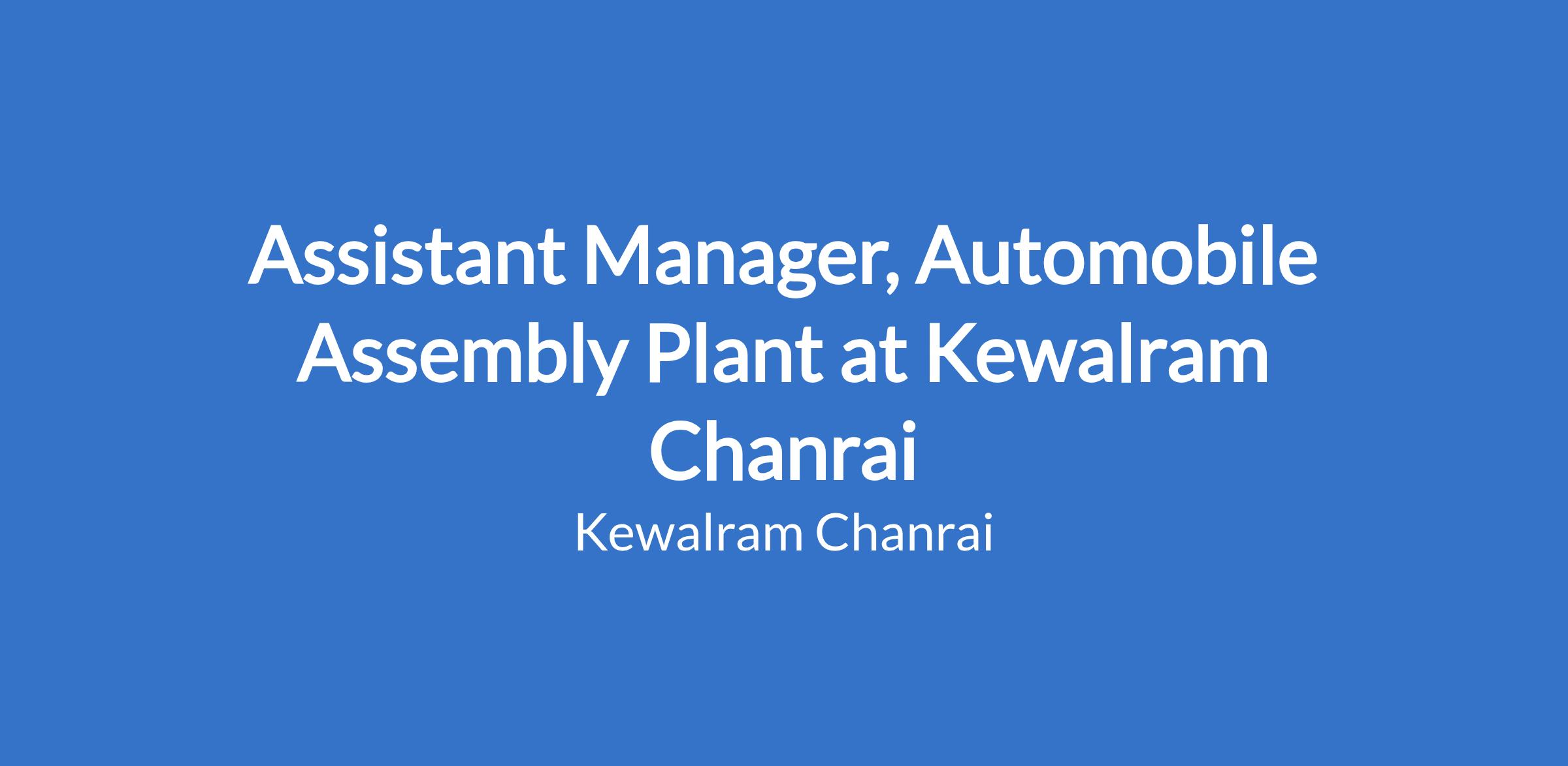 Assistant Manager, Automobile Assembly Plant at Kewalram Chanrai