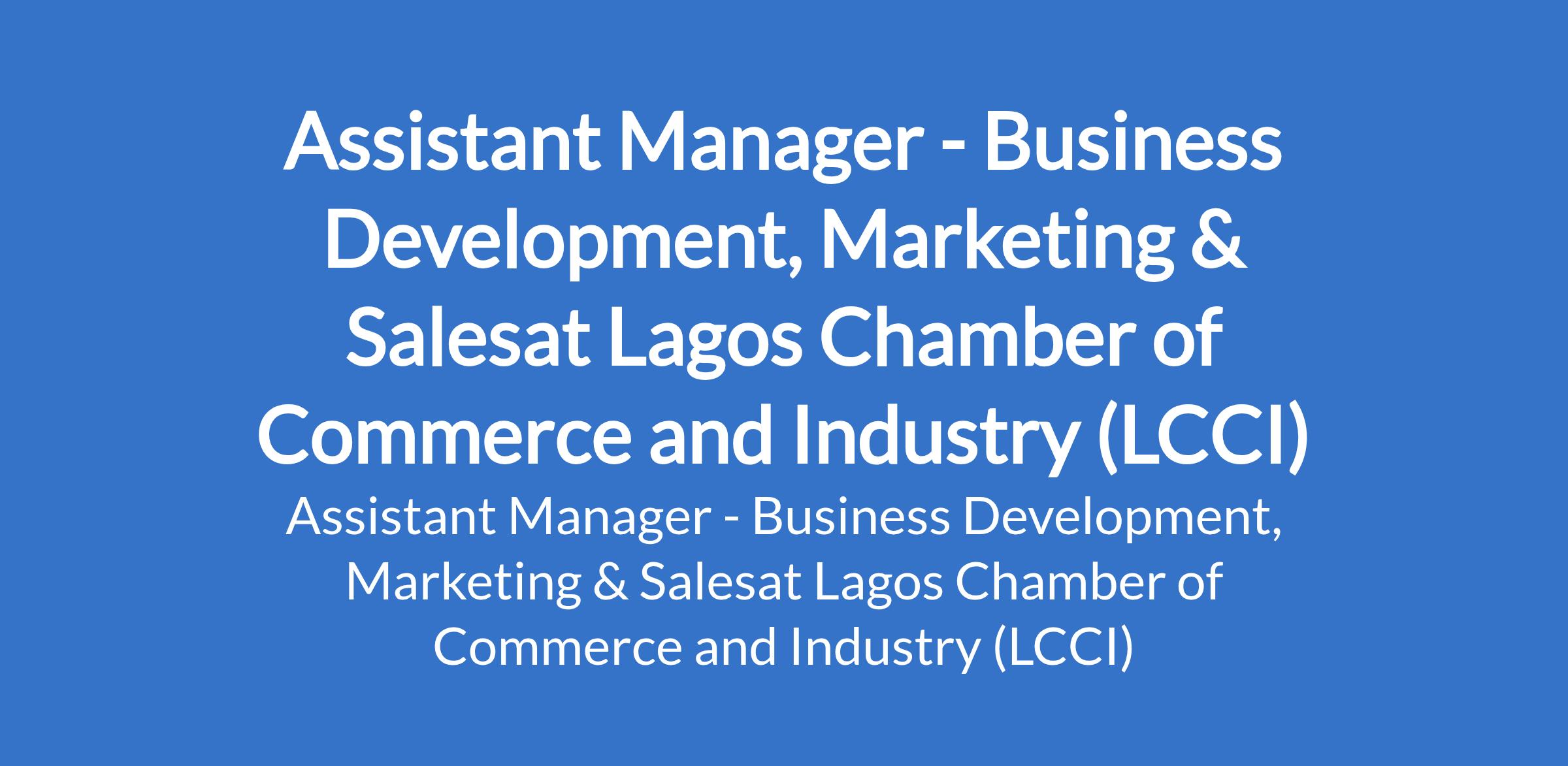 Lagos Chamber of Commerce and Industry (LCCI) is recruiting to fill the position of: Assistant Manager - Business Development, Marketing & Sales. The position is located in Lagos State. Interested candidates should possess a Bachelors Degree in Marketing, Business Administration, Social Sciences, or a related discipline with 6 - 8 years relevant experience in sales, marketing, and business development.