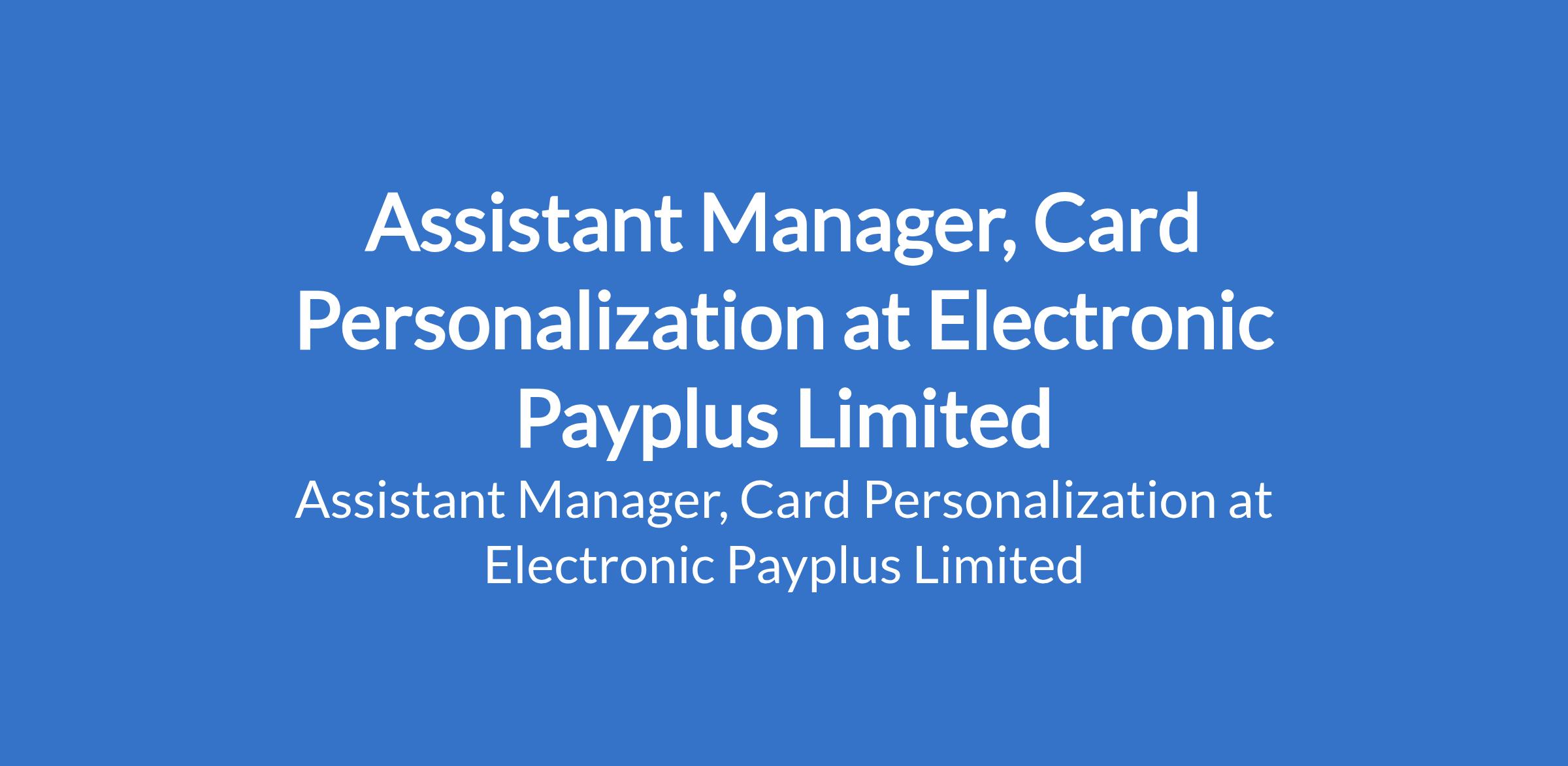 Assistant Manager, Card Personalization at Electronic Payplus Limited