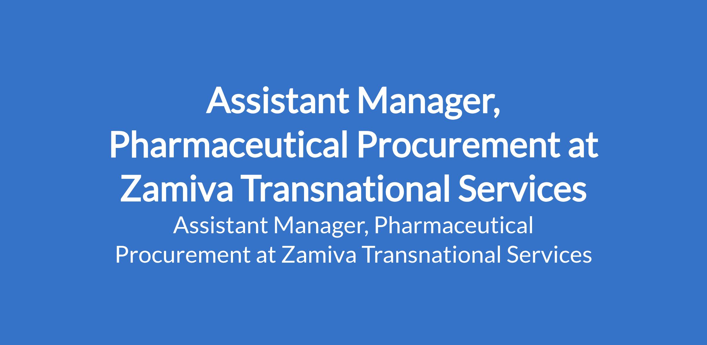 Zamiva Transnational Services is recruiting to fill the position of: Assistant Manager, Pharmaceutical Procurement. The position is located in Mowe, Lagos State. Salary: N400,000 N500,000 / month. Interested candidates should possess a B.Sc / HND in any relevant field, a practical pharmaceutical manufacturing procurement experience is non-negotiable with 5 - 6 years of procurement experience in the pharmaceutical industry.