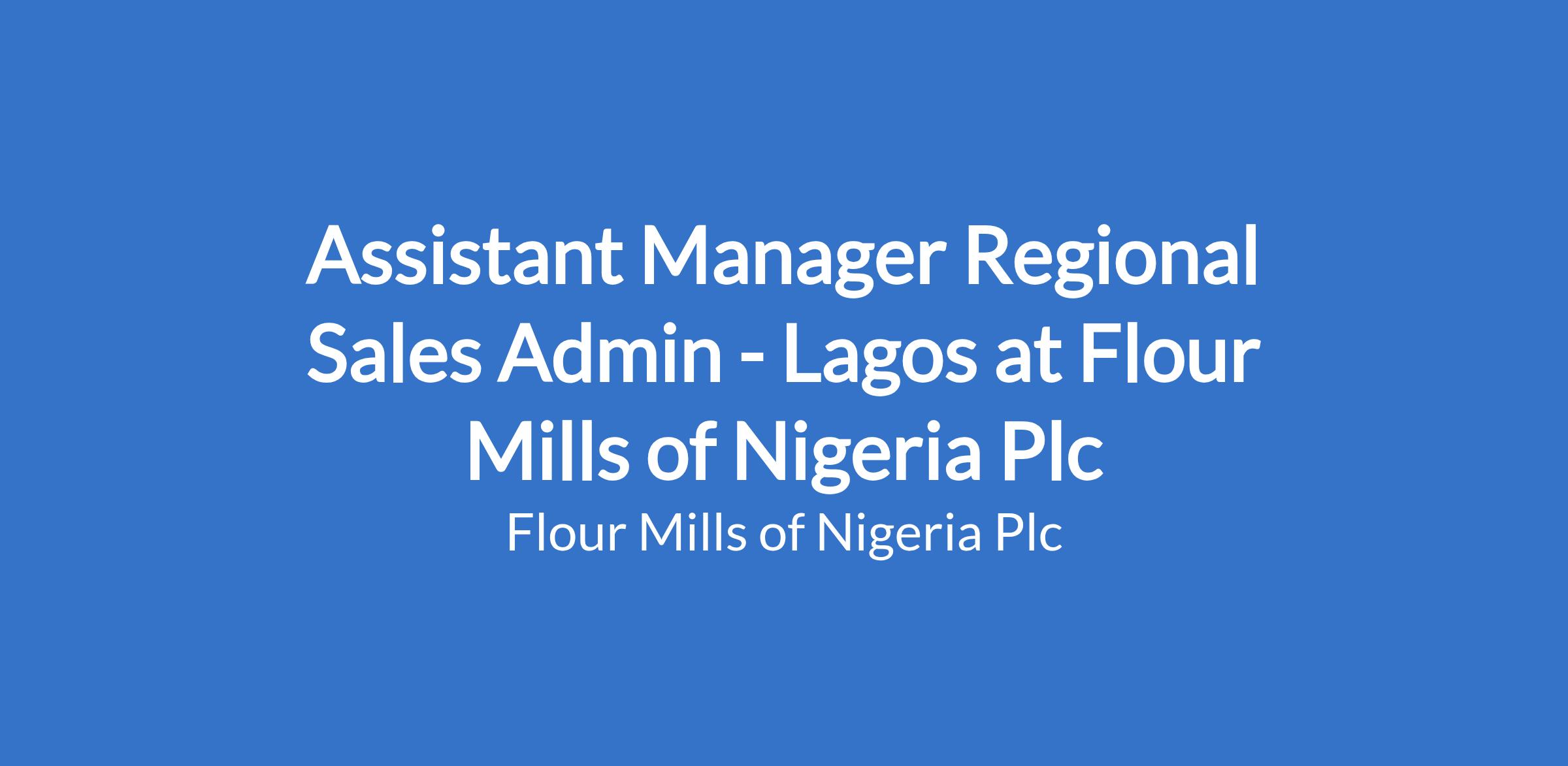 Assistant Manager Regional Sales Admin - Lagos at Flour Mills of Nigeria Plc