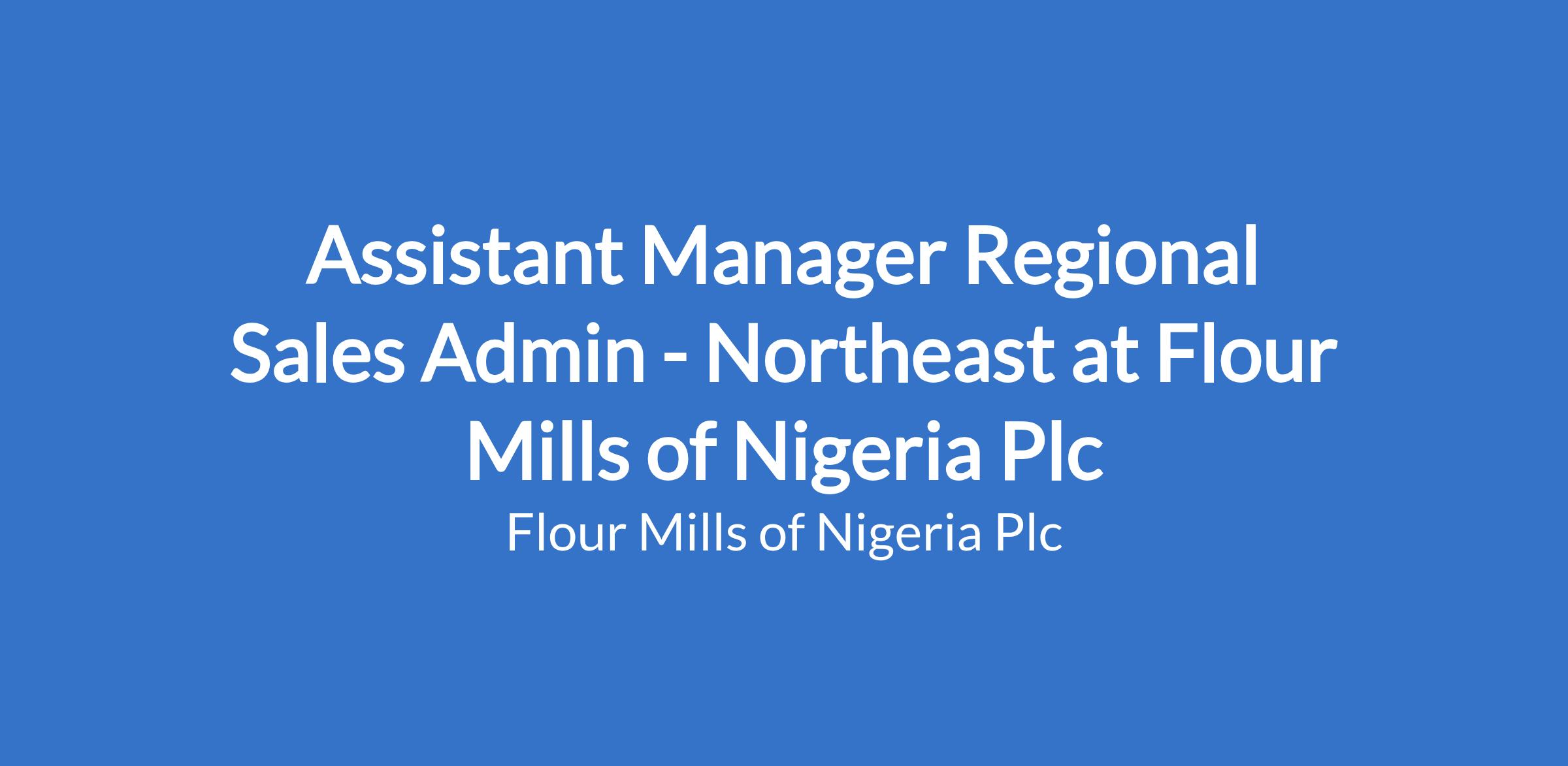 Assistant Manager Regional Sales Admin - Northeast at Flour Mills of Nigeria Plc
