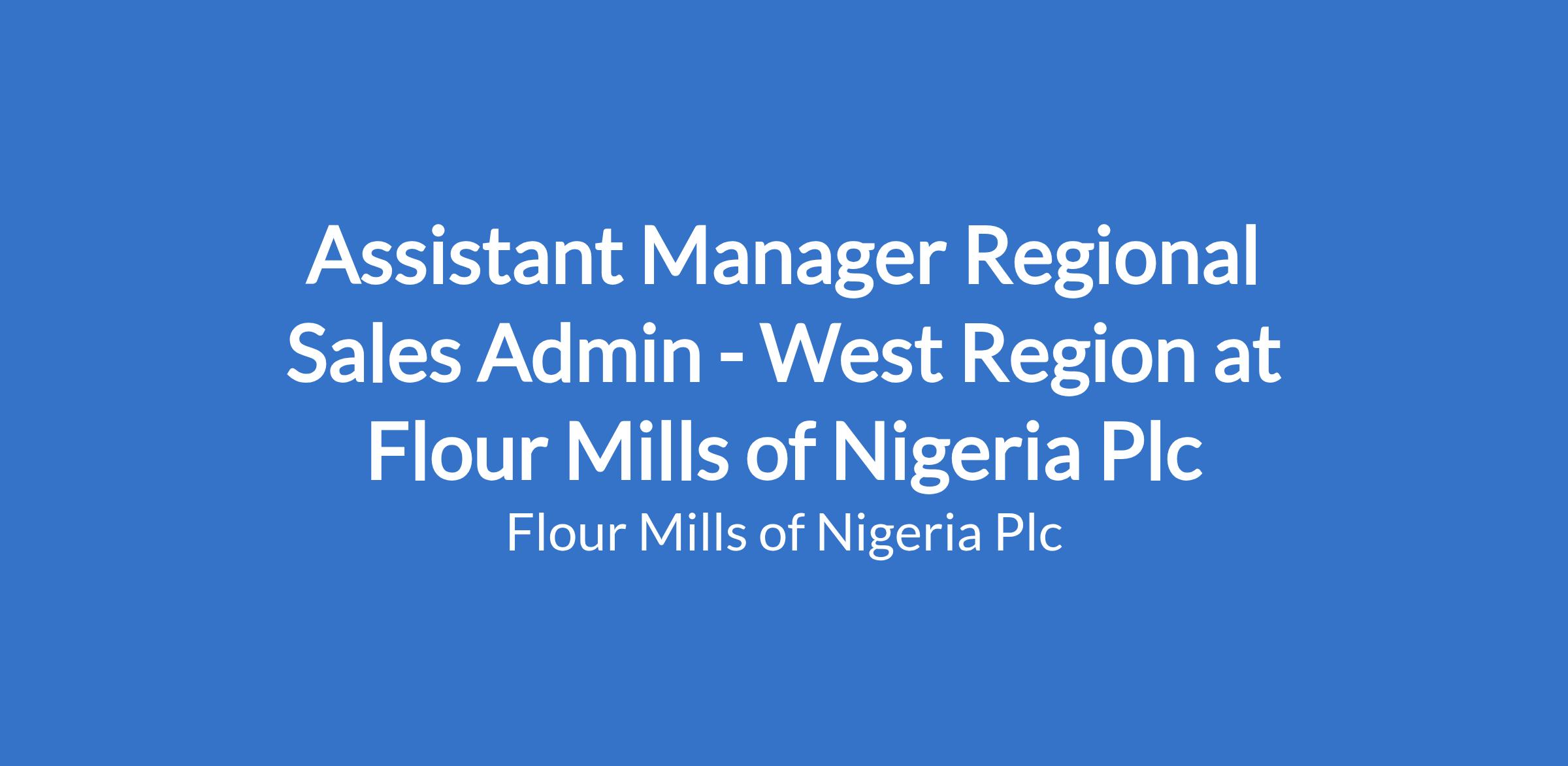 Assistant Manager Regional Sales Admin - West Region at Flour Mills of Nigeria Plc