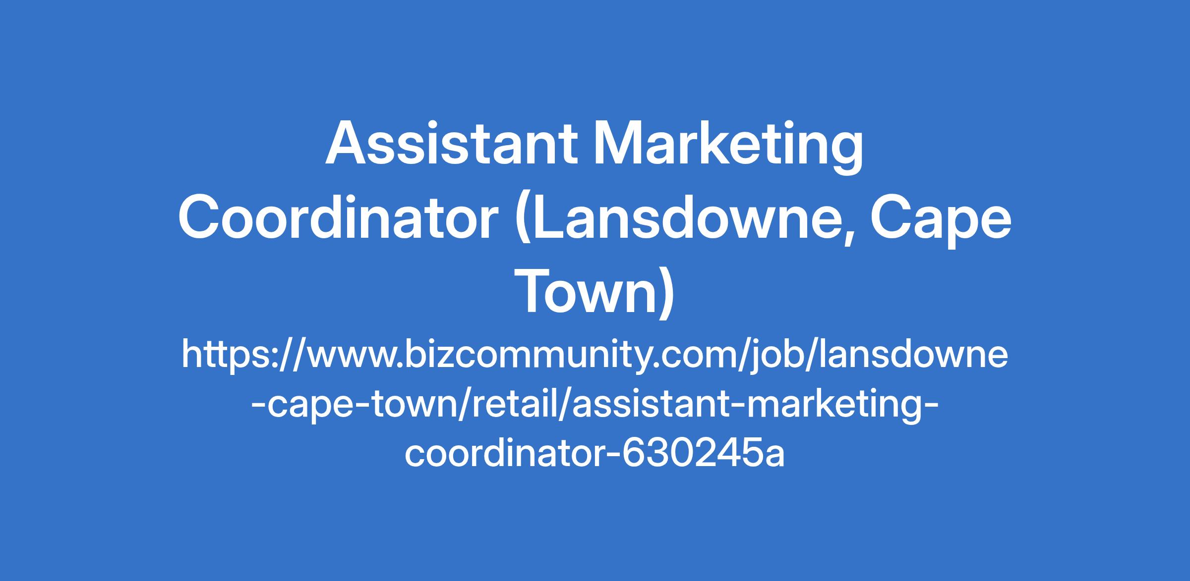 Assistant Marketing Coordinator (Lansdowne, Cape Town)