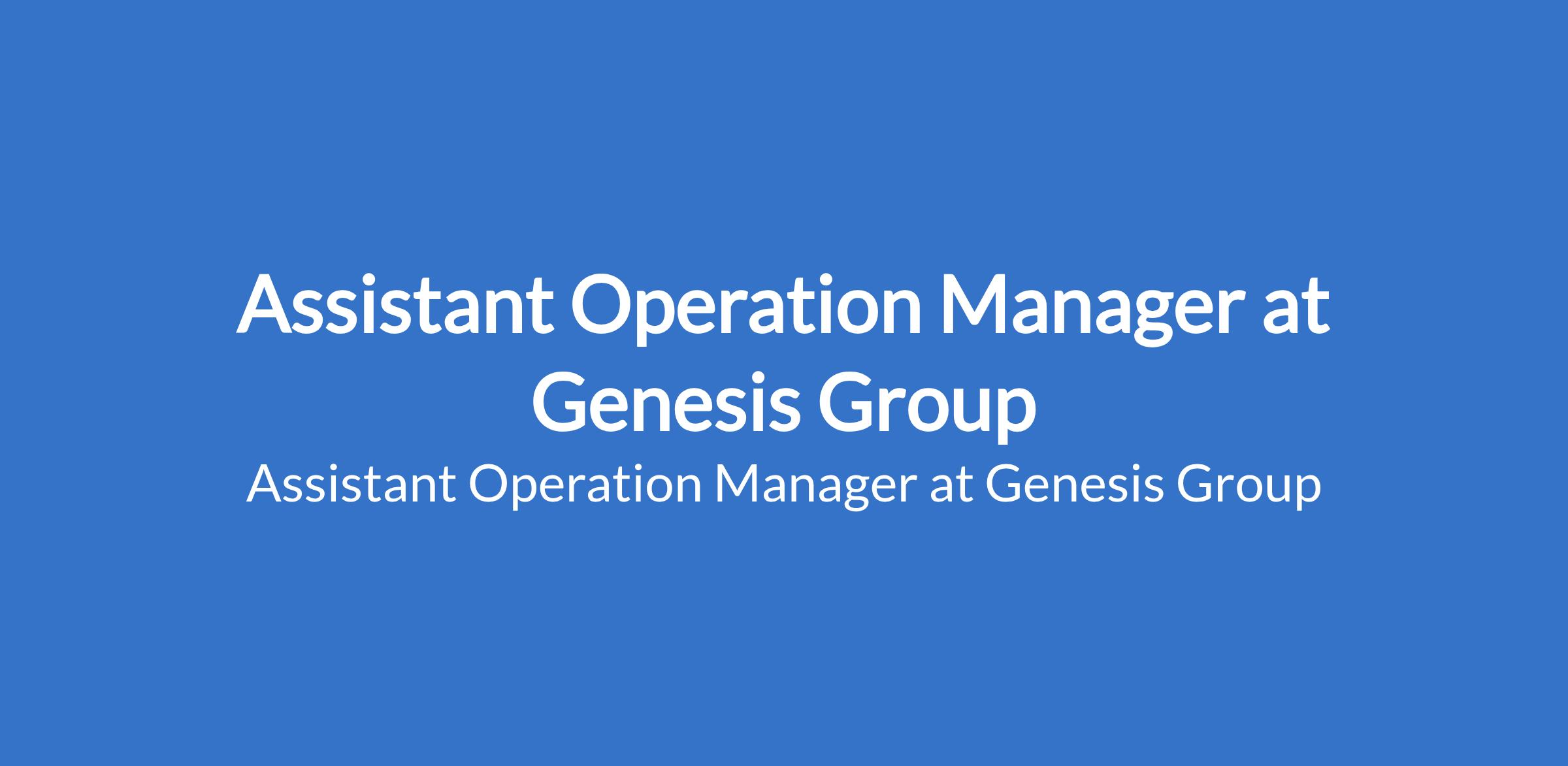Genesis Group is recruiting to fill the position of: Assistant Operation Manager. Interested candidates should possess relevant qualifications.