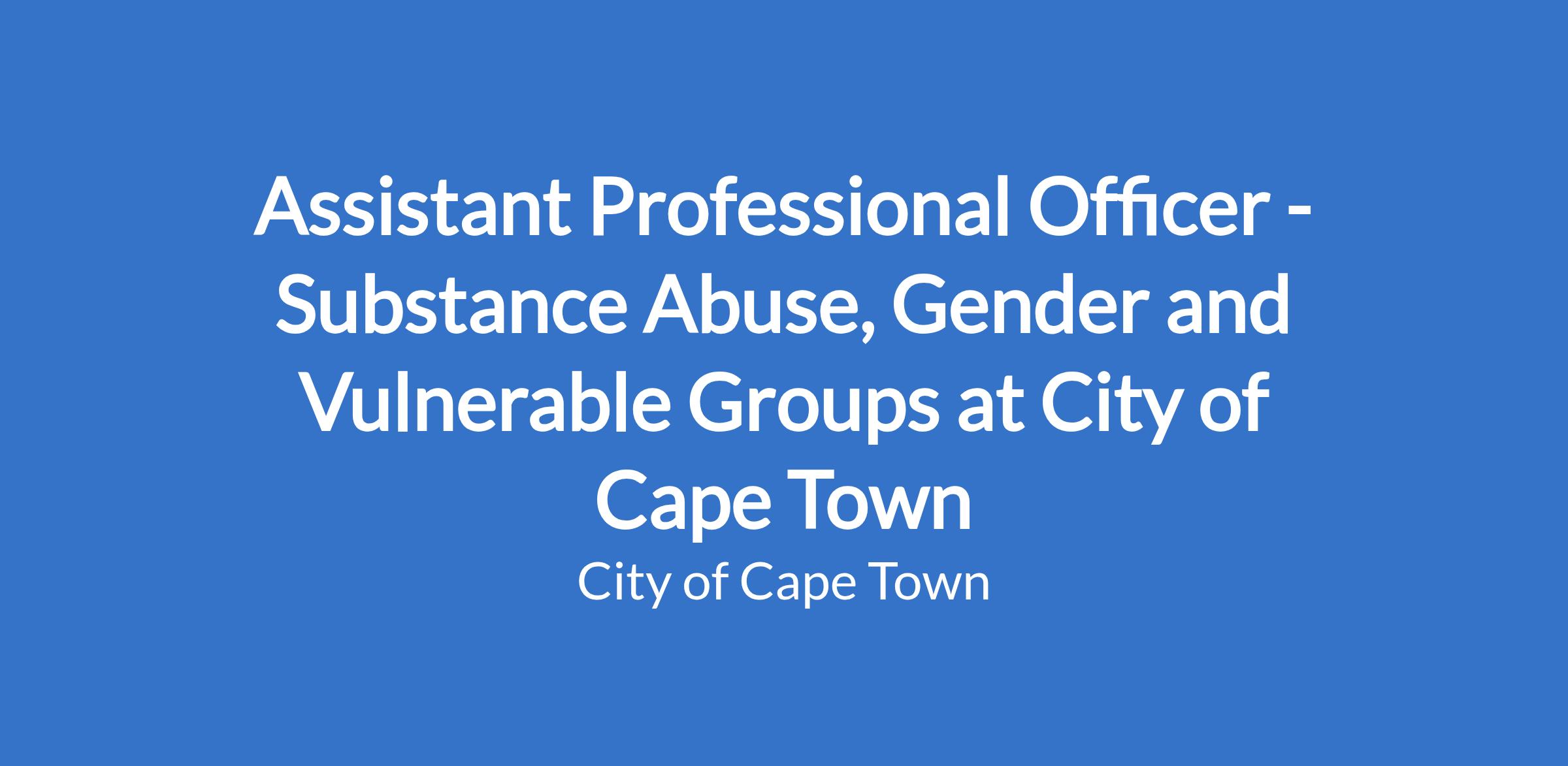 Assistant Professional Officer - Substance Abuse, Gender and Vulnerable Groups at City of Cape Town