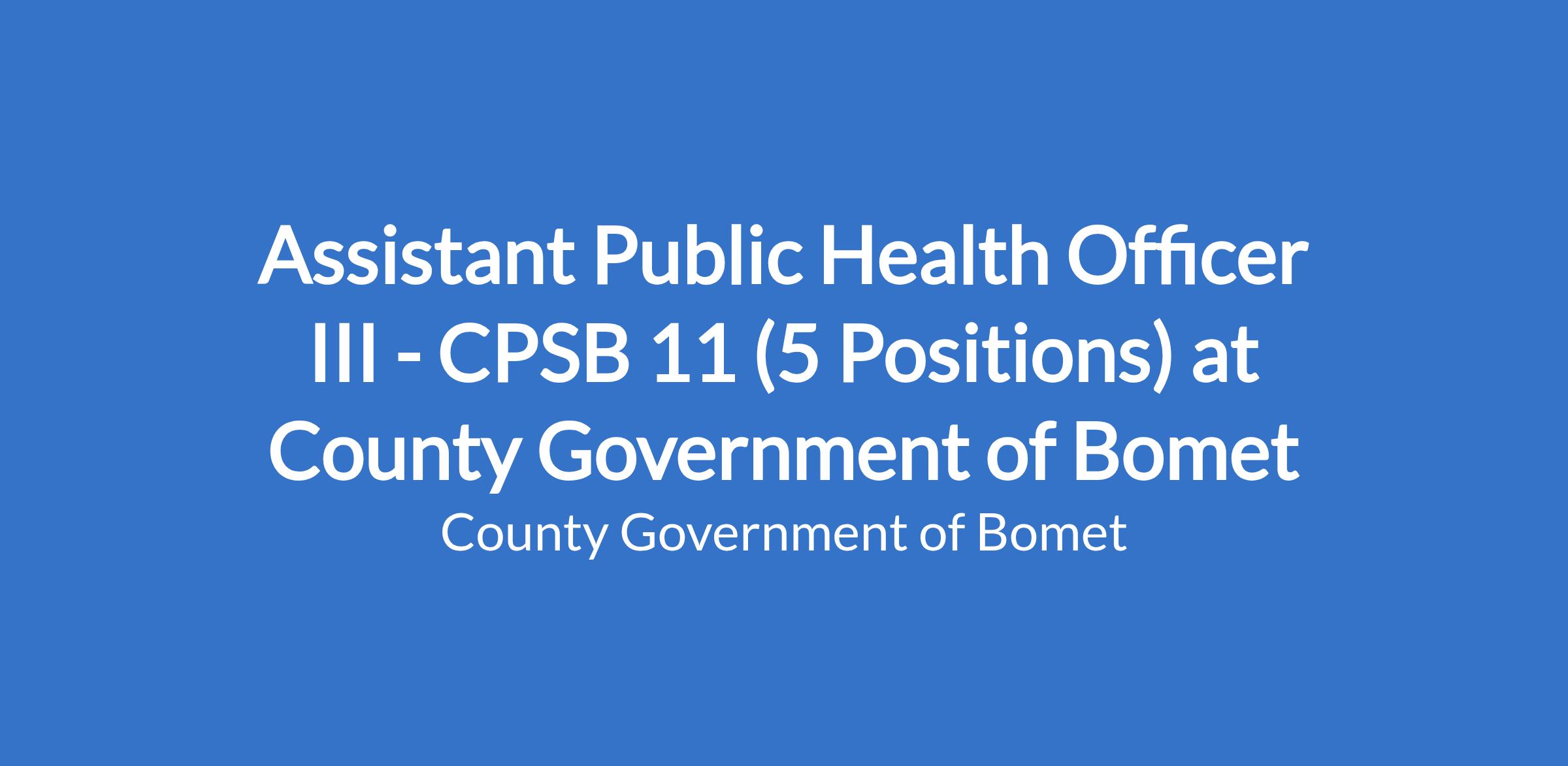 Assistant Public Health Officer III - CPSB 11 (5 Positions) at County Government of Bomet