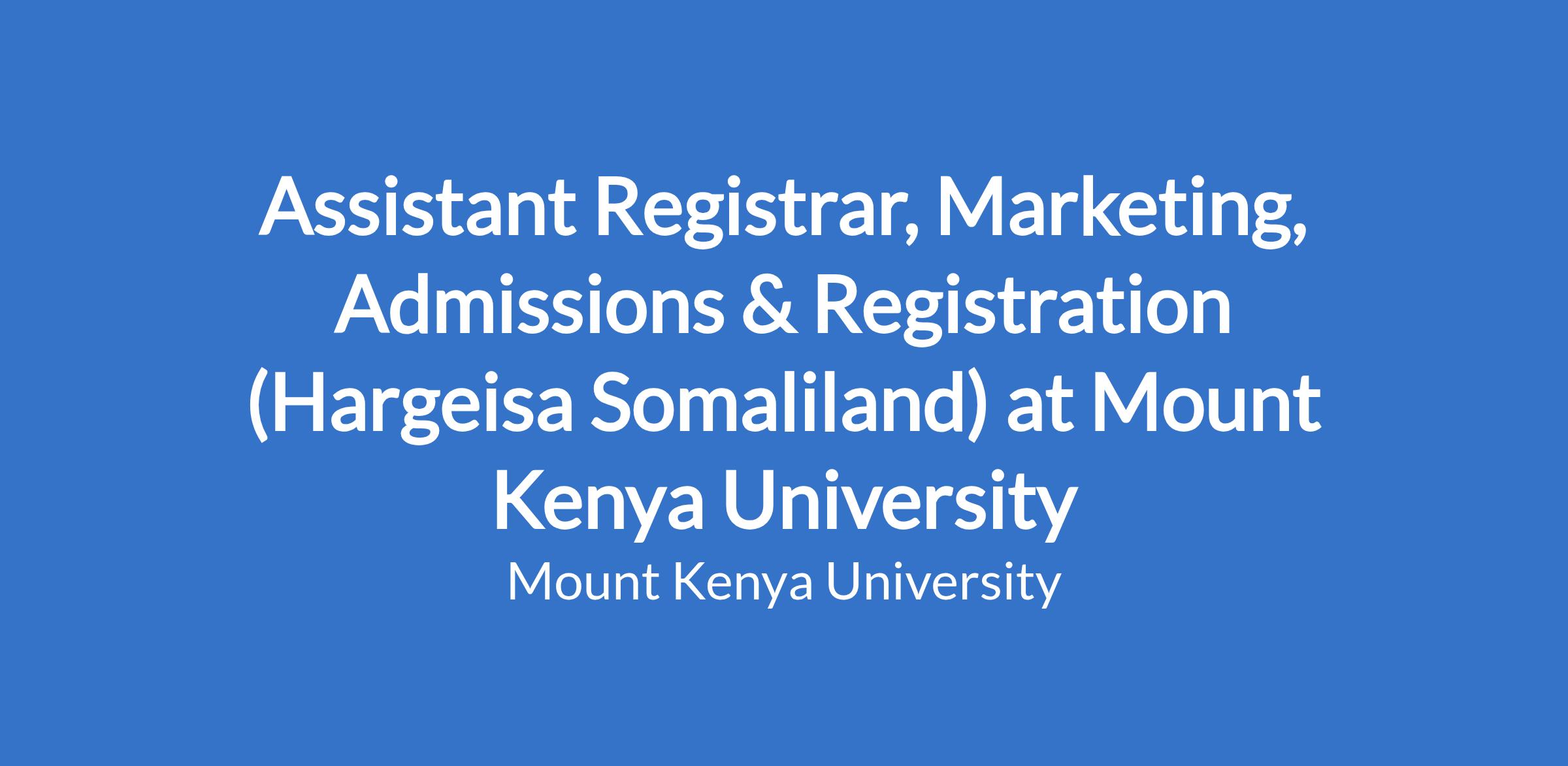 Assistant Registrar, Marketing, Admissions & Registration (Hargeisa Somaliland) at Mount Kenya University