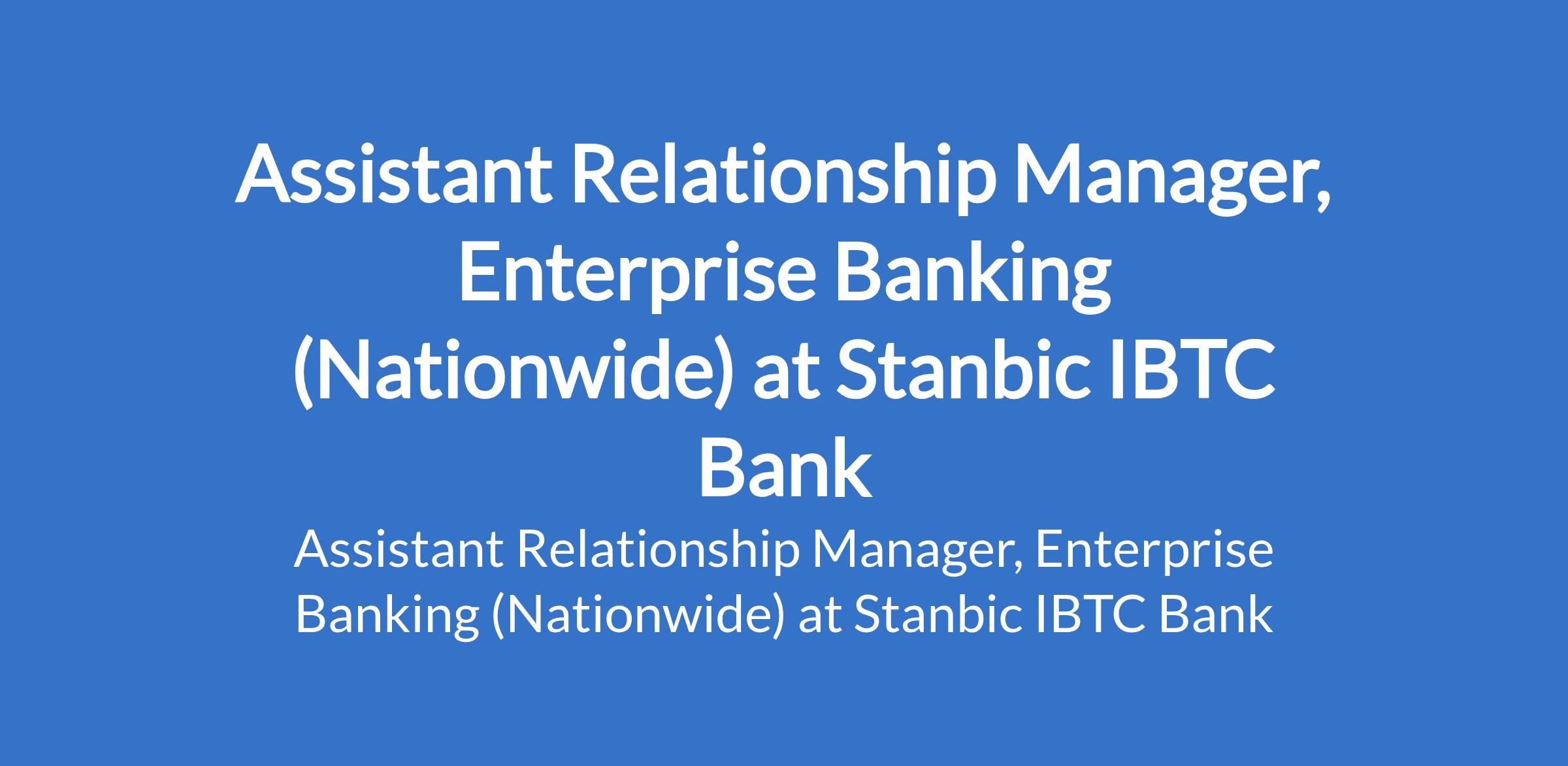 Stanbic IBTC Bank is recruiting to fill the position of: Assistant Relationship Manager, Enterprise Banking. This role is required nationwide. Interested candidates should possess a First Degree in Business Commerce or any field with 3 - 4 years of experience, including management portfolio experience servicing Business or Commercial Banking clients, experience in a Branch sales an d/ or service role, and experience in preparing Credit motivations and understanding of lending principles.