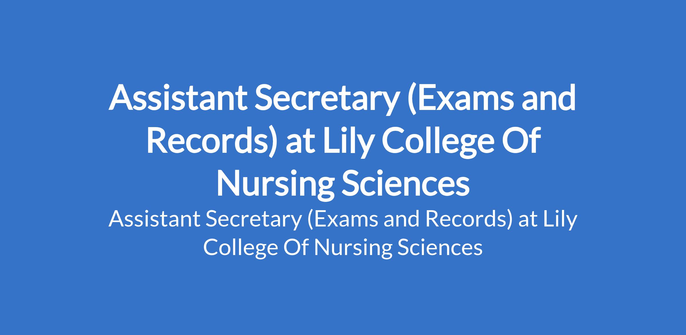 Lily College Of Nursing Sciences is recruiting to fill the position of: Assistant Secretary (Exams and Records). The position is located in Warri, Delta State. Interested candidates should possess a minimum of OND / HND / BSc Degree in Secretarial Studies, Business Administration, Records Management, or a related field with relevant experience in examinations and records management (experience in a nursing or academic institution is an advantage).