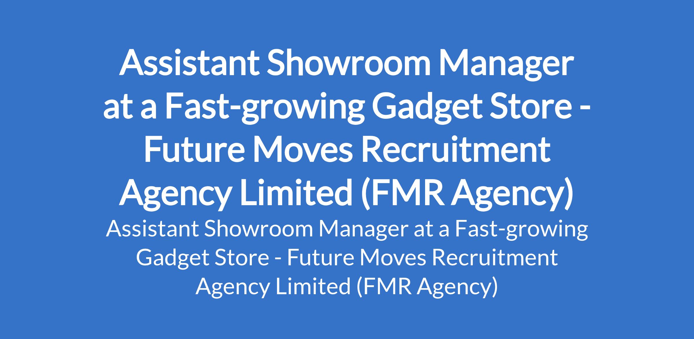 Future Moves Recruitment Agency Limited (FMR Agency) - Our client, a fast-growing gadget store is recruiting to fill the position of: Assistant Showroom Manager. The position is located in Sagamu, Ogun State. Salary: N90,000/ month. Interested candidates should possess a minimum of OND / HND / BSc in Business Administration, Marketing, or related fields with 13 years experience in retail sales (electronics store experience is an advantage).
