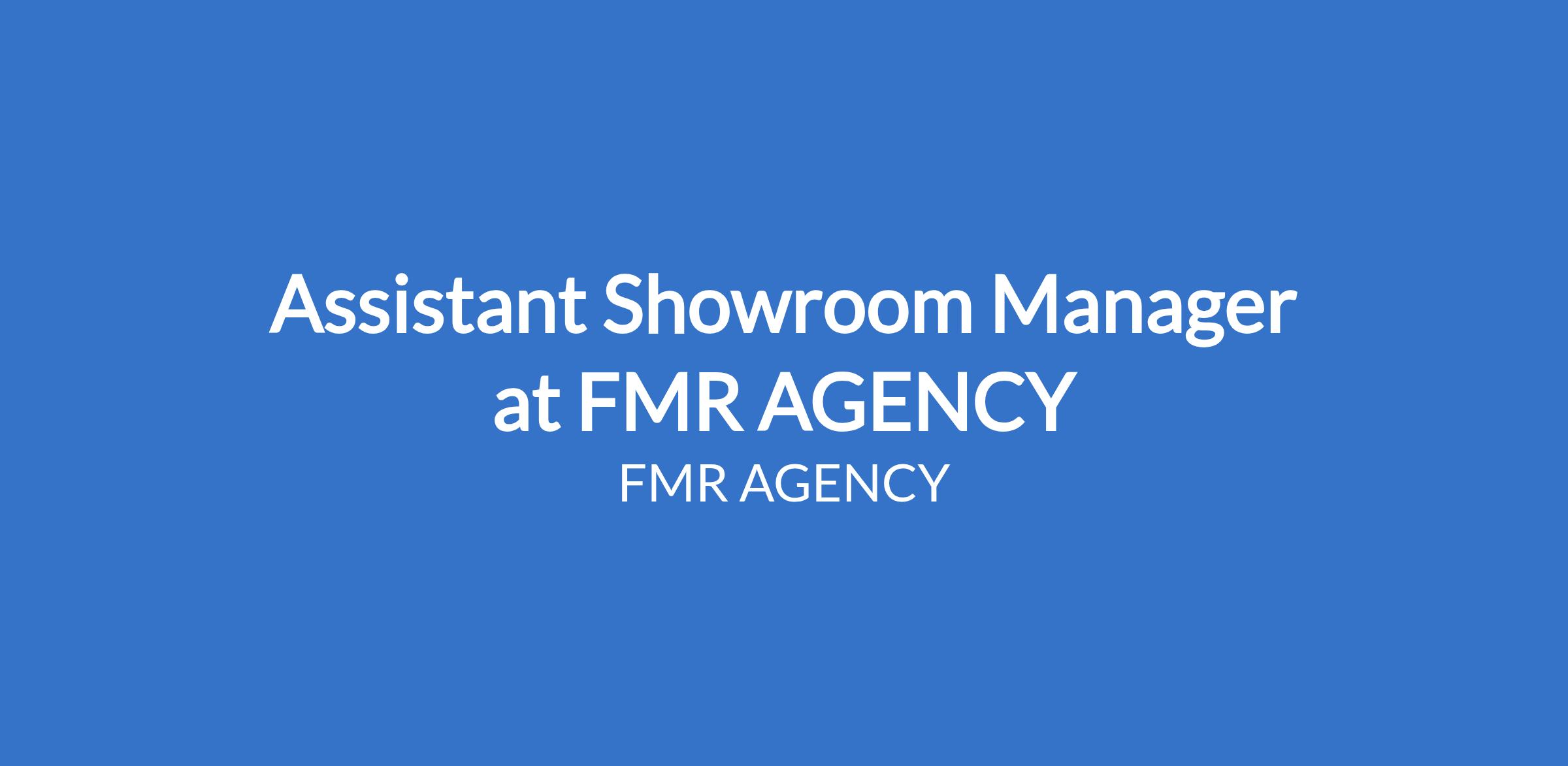 Assistant Showroom Manager at FMR AGENCY