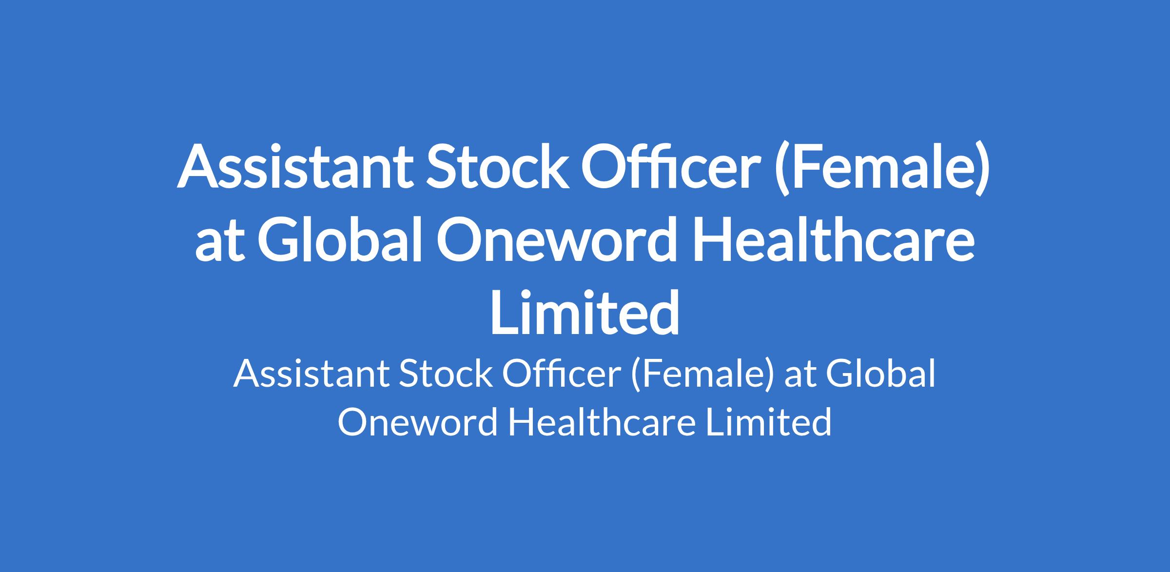 Global Oneword Healthcare Limited is recruiting to fill the position of: Assistant Stock Officer (Female). The position is located in Surulere, Lagos State. Interested candidates should possess an OND, HND, and BSc Degree in Accounting or any related course with a minimum of 1 year relevant work experience.