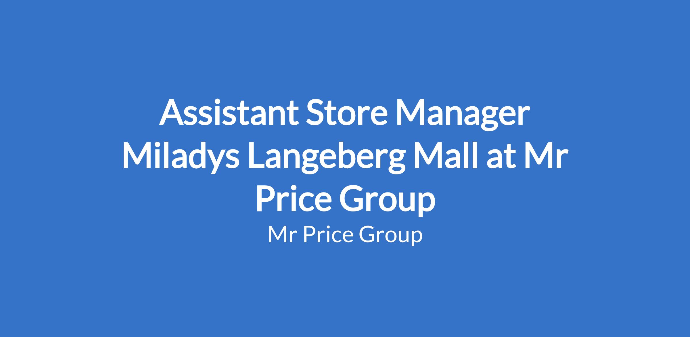Assistant Store Manager Miladys Langeberg Mall at Mr Price Group