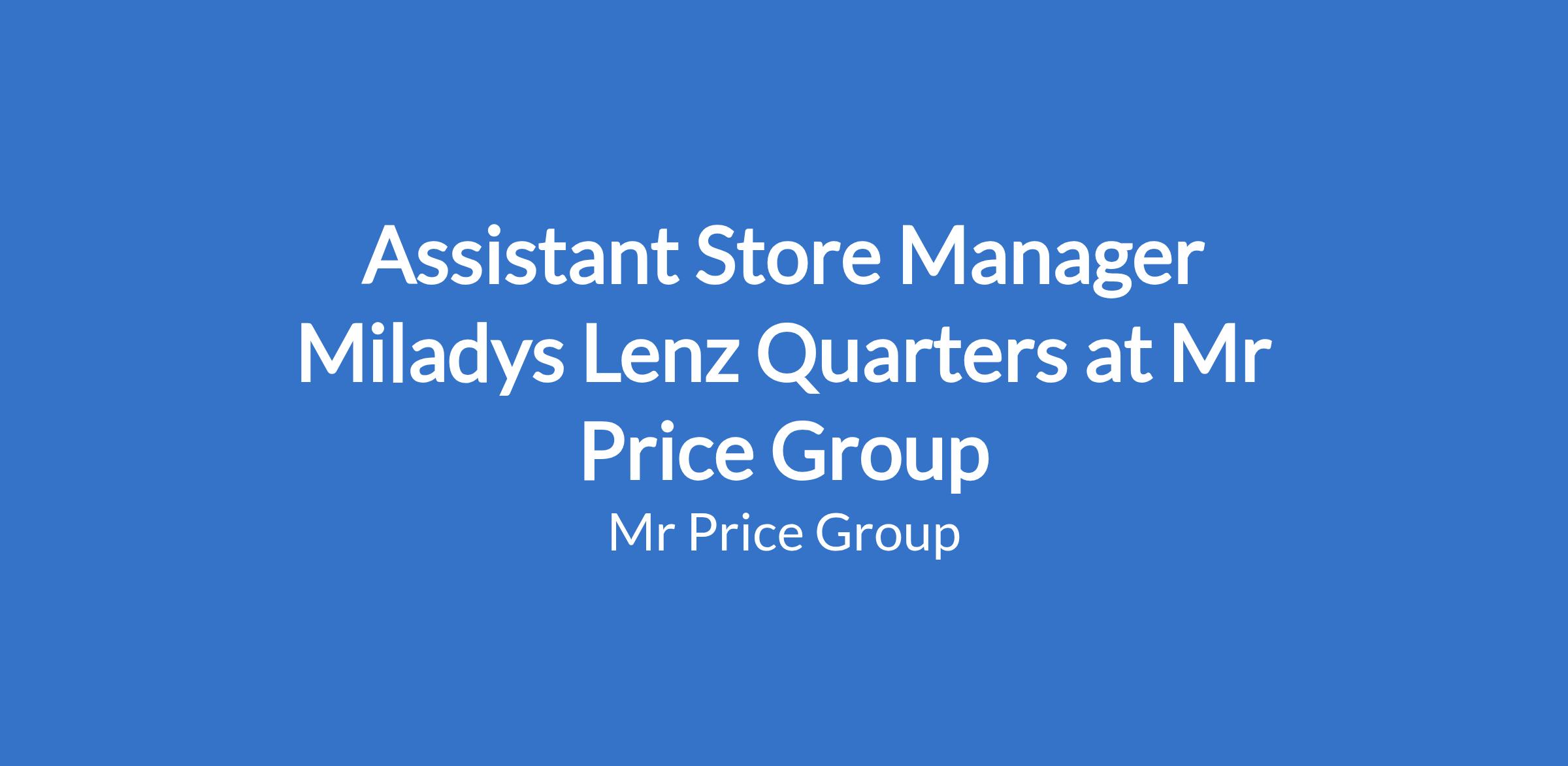 Assistant Store Manager Miladys Lenz Quarters at Mr Price Group