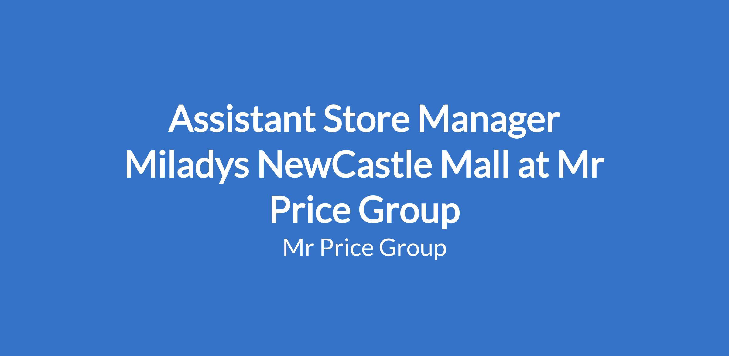 Assistant Store Manager Miladys NewCastle Mall at Mr Price Group