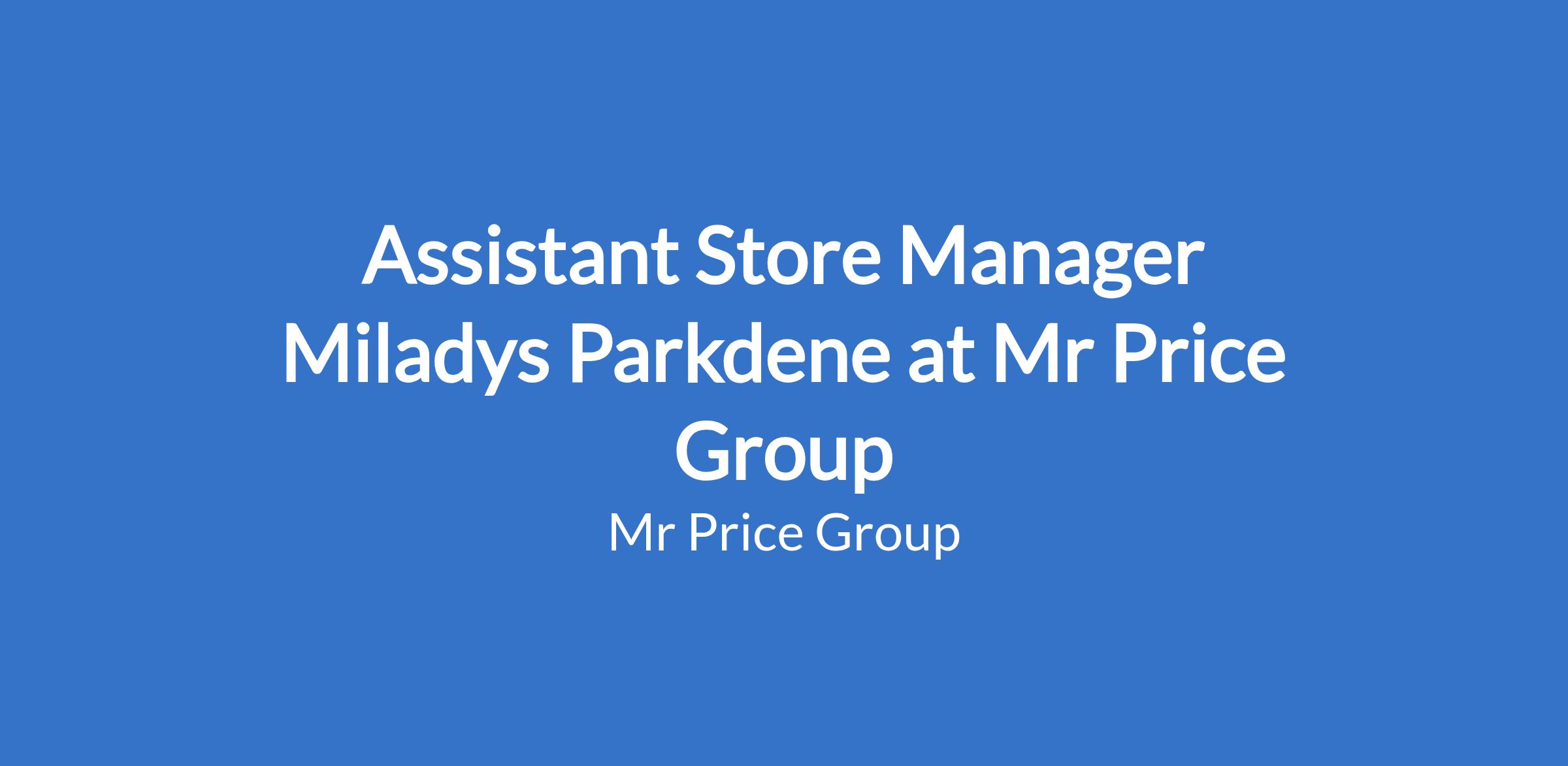 Assistant Store Manager Miladys Parkdene at Mr Price Group