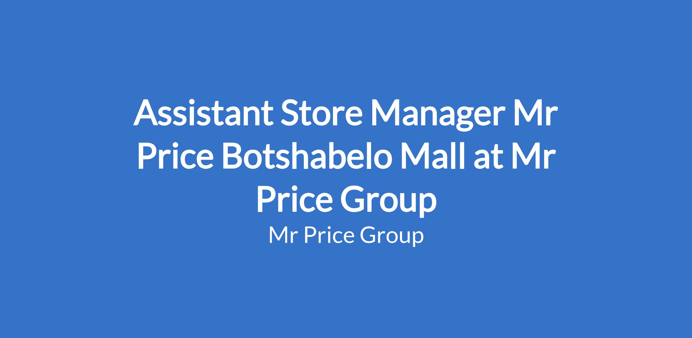 Assistant Store Manager Mr Price Botshabelo Mall at Mr Price Group