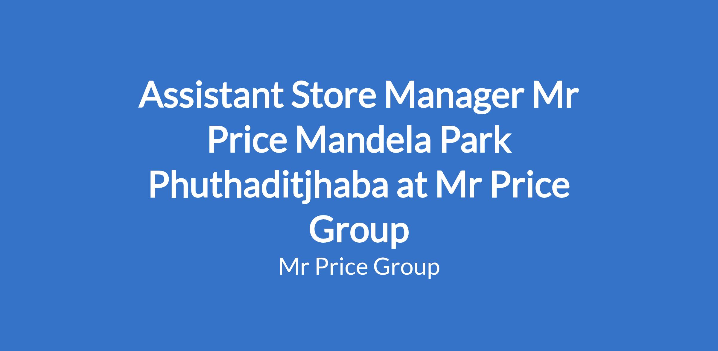 Assistant Store Manager Mr Price Mandela Park Phuthaditjhaba at Mr Price Group