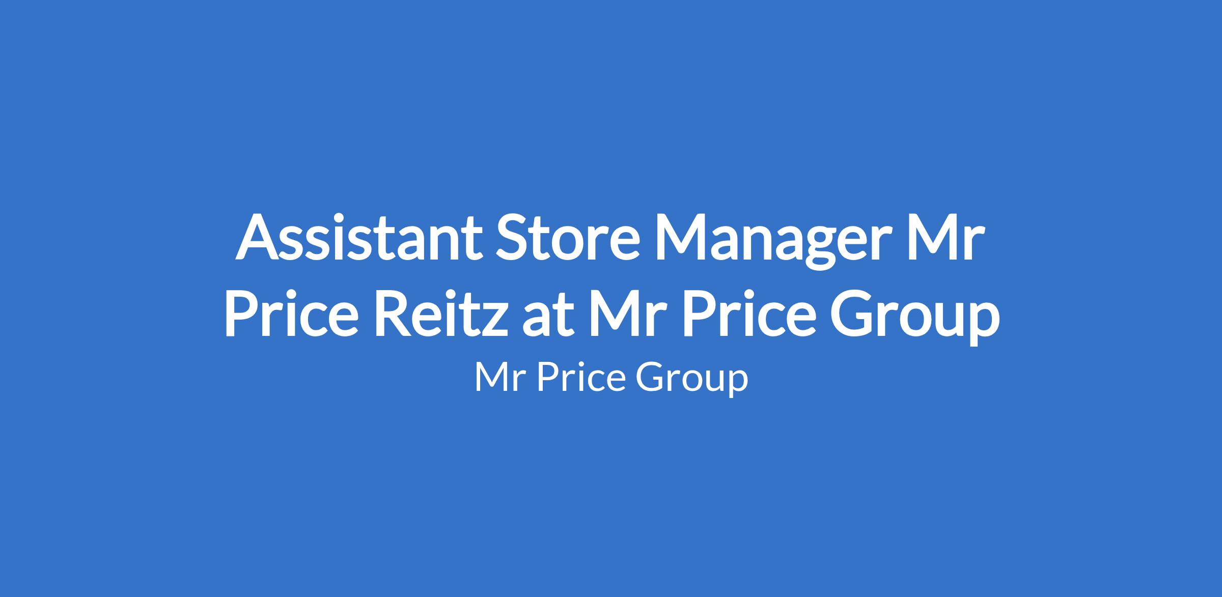 Assistant Store Manager Mr Price Reitz at Mr Price Group