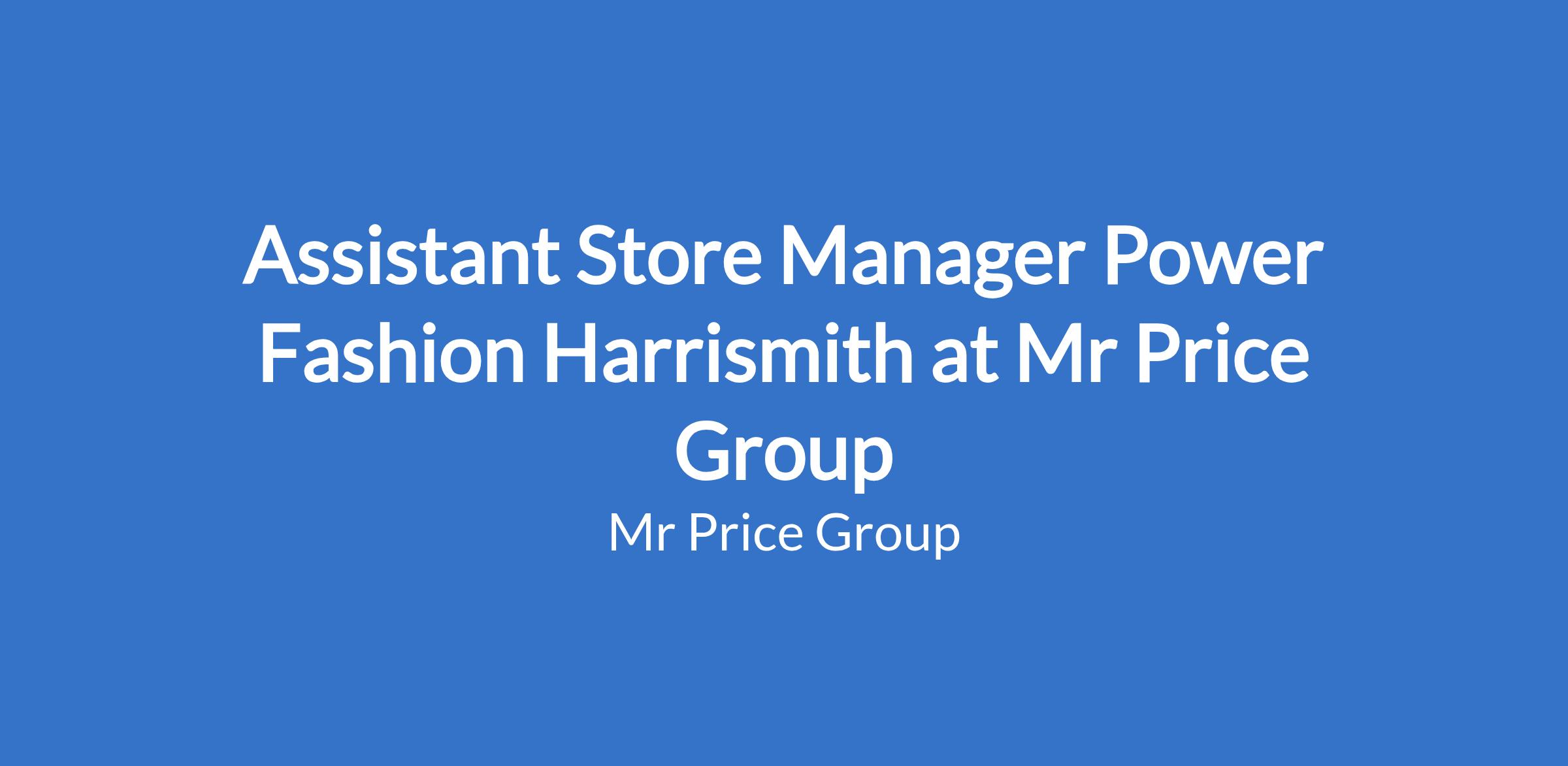 Assistant Store Manager Power Fashion Harrismith at Mr Price Group