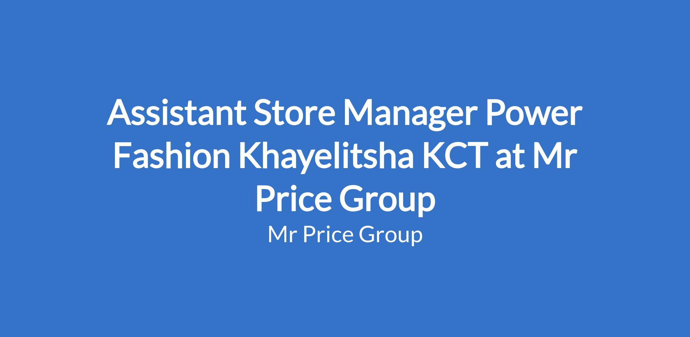 Assistant Store Manager Power Fashion Khayelitsha KCT at Mr Price Group