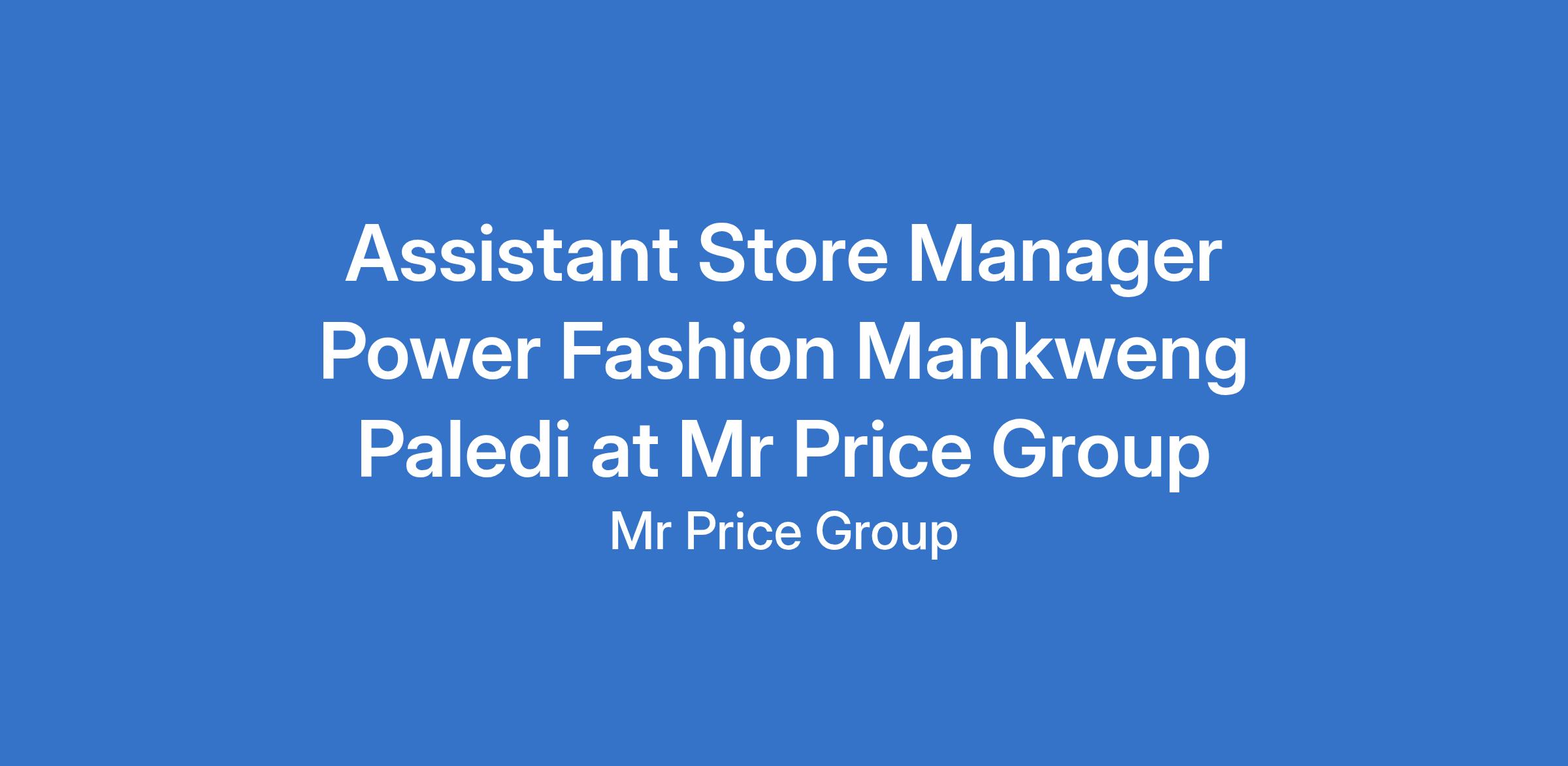 Assistant Store Manager Power Fashion Mankweng Paledi at Mr Price Group