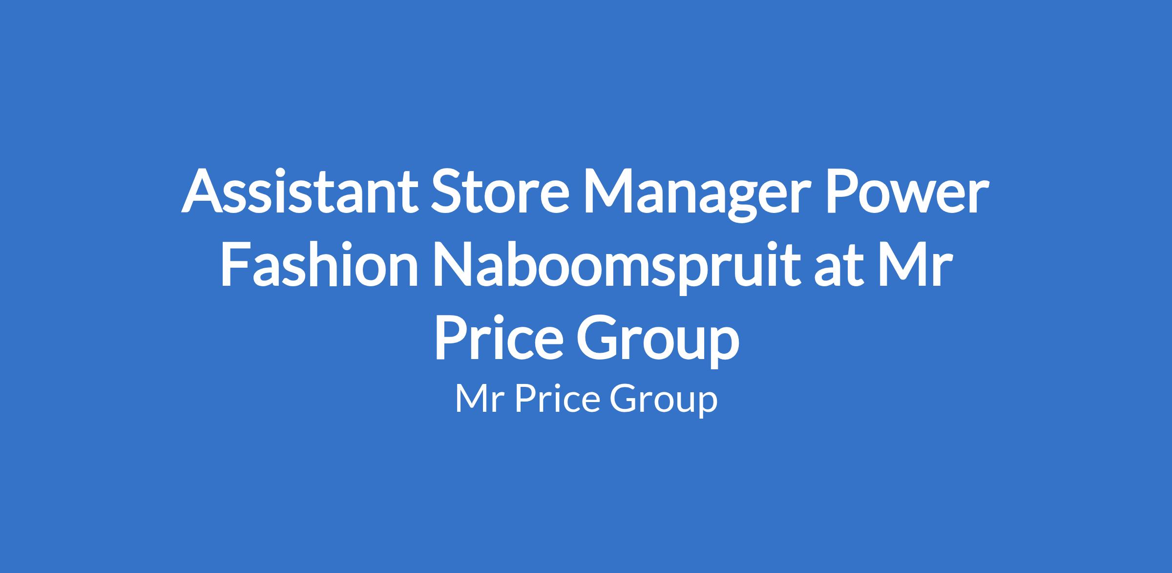 Assistant Store Manager Power Fashion Naboomspruit at Mr Price Group