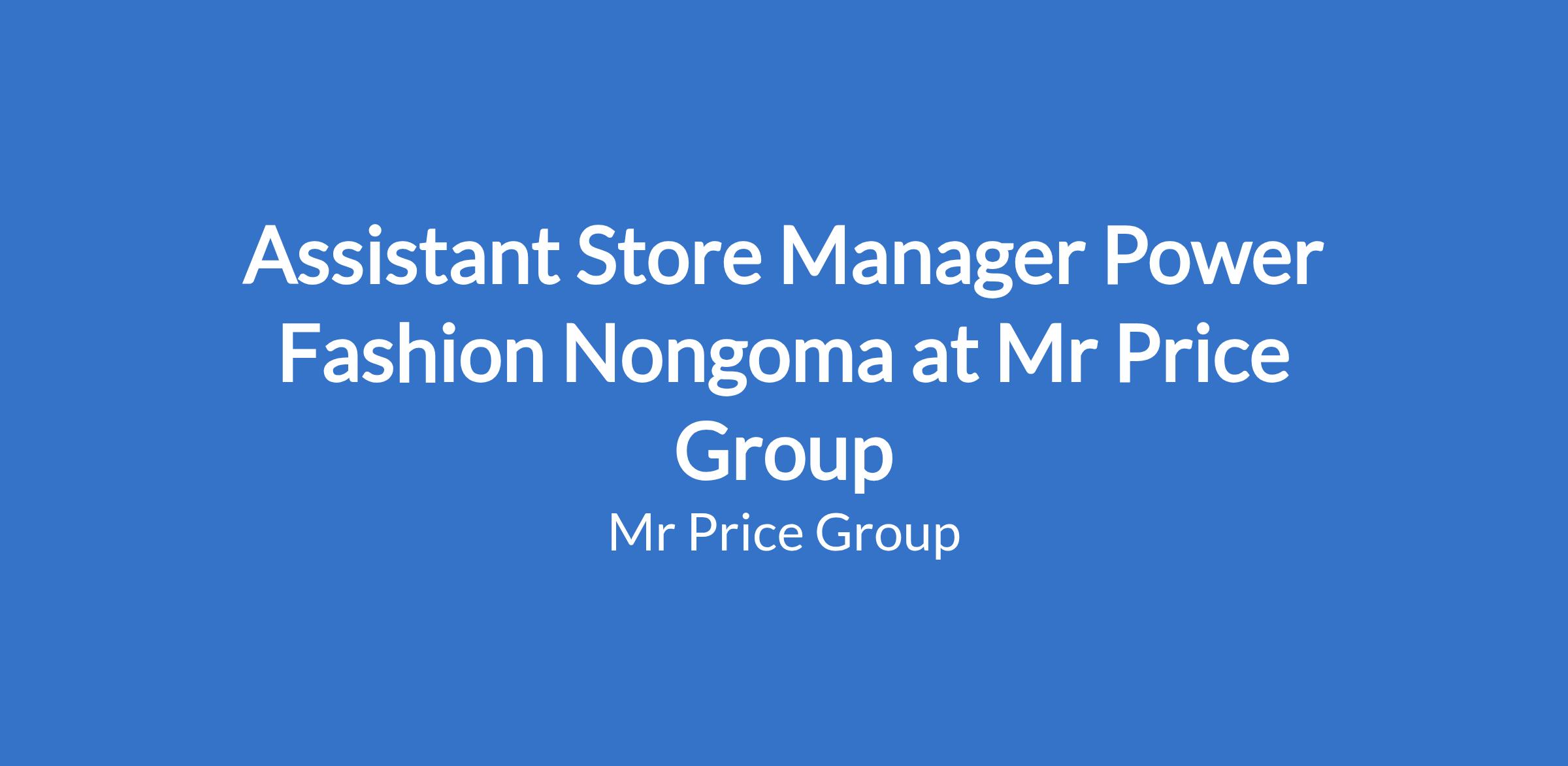 Assistant Store Manager Power Fashion Nongoma at Mr Price Group