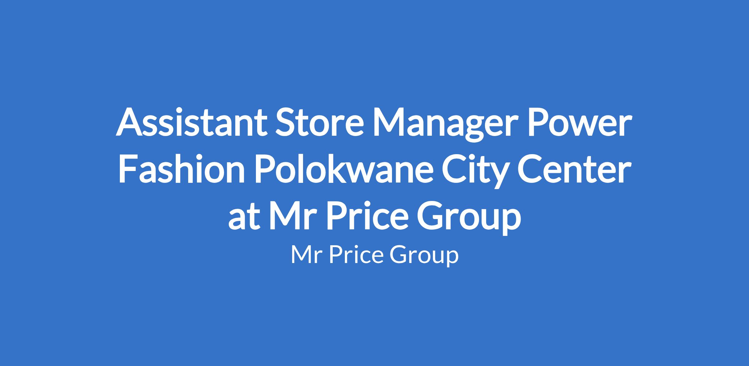 Assistant Store Manager Power Fashion Polokwane City Center at Mr Price Group