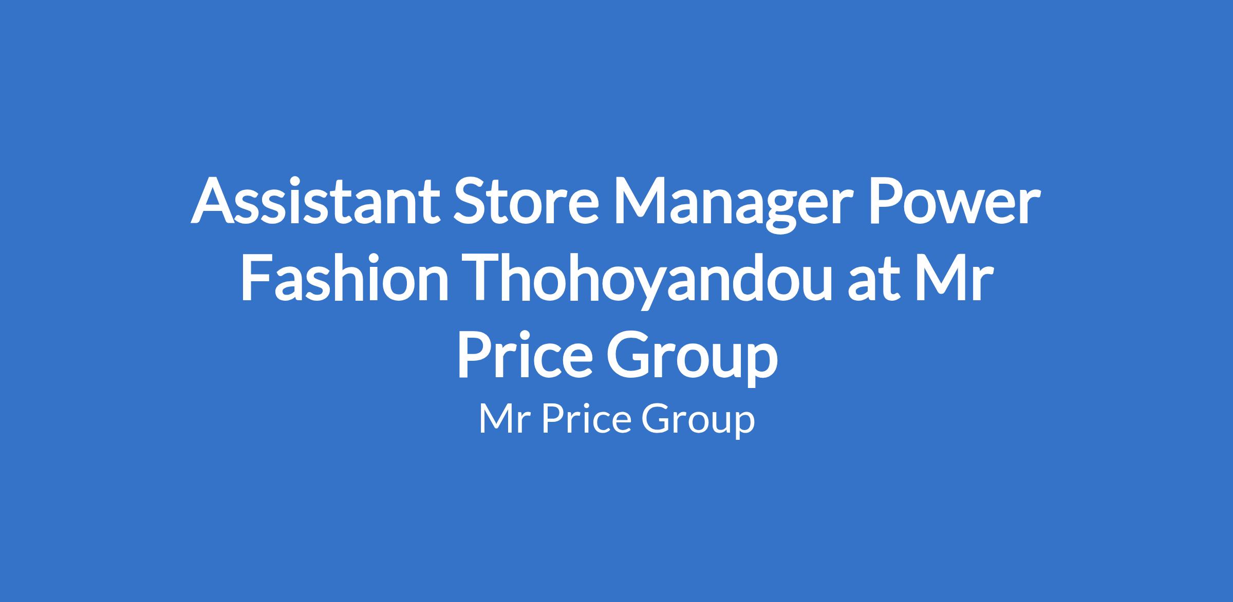 Assistant Store Manager Power Fashion Thohoyandou at Mr Price Group