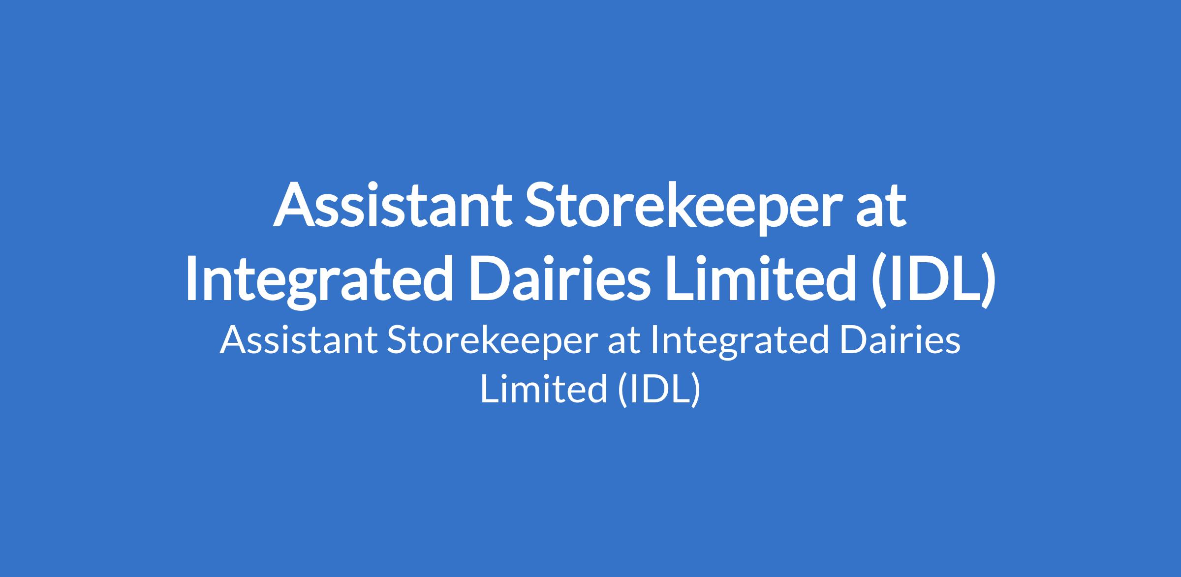 Assistant Storekeeper at Integrated Dairies Limited (IDL)