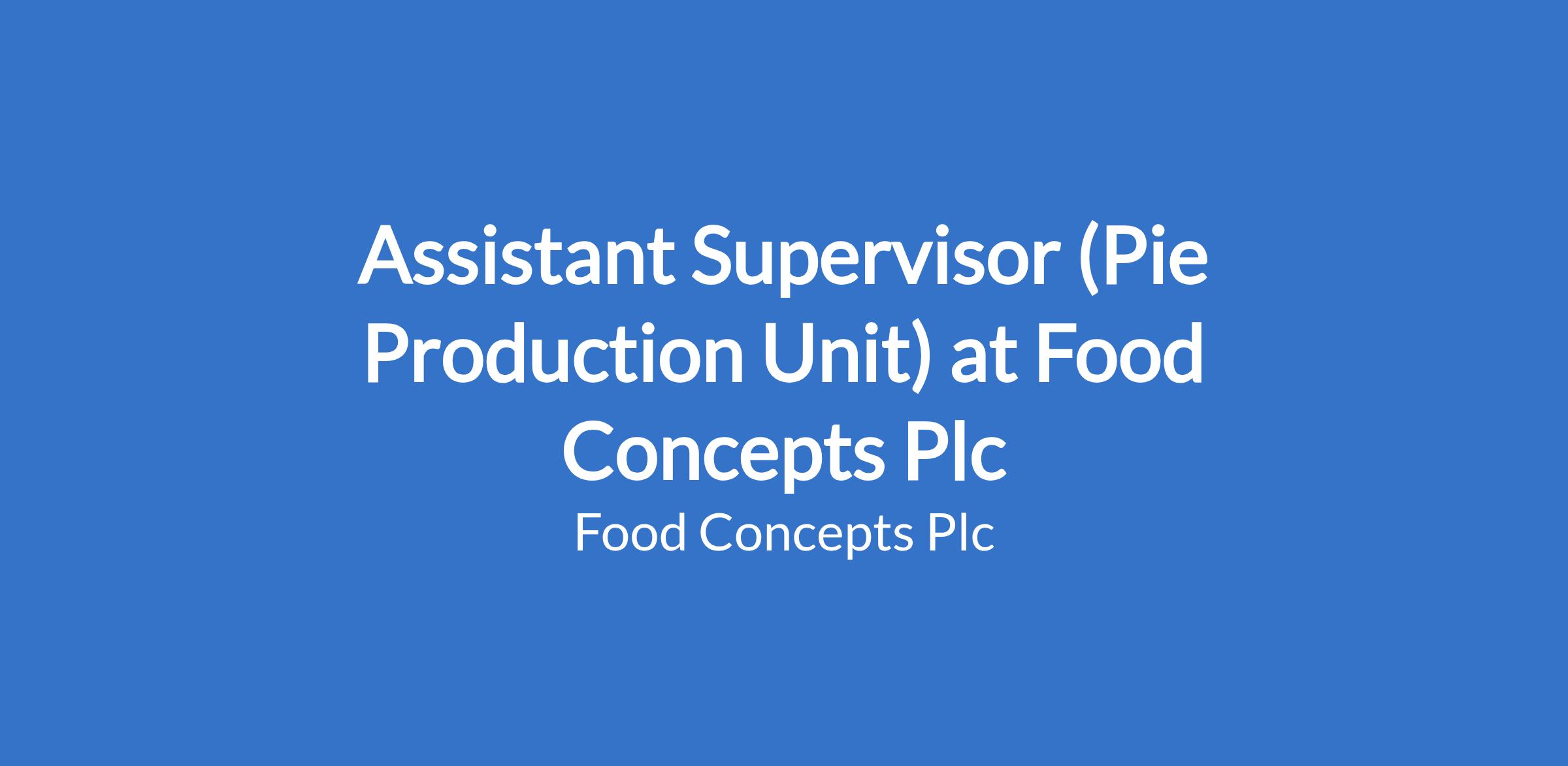 Assistant Supervisor (Pie Production Unit) at Food Concepts Plc