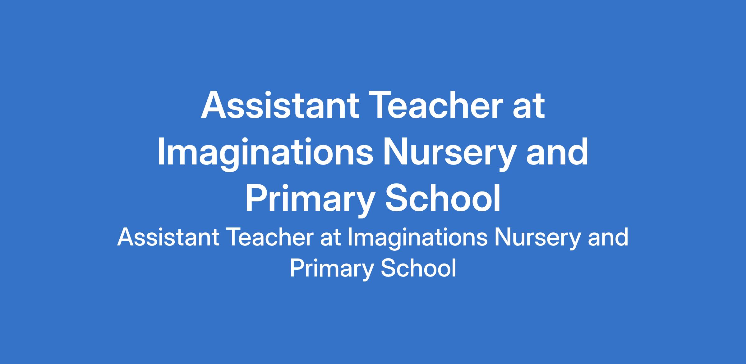 Imaginations Nursery and Primary School is recruiting to fill the position of: Assistant Teacher. The position is located in Ilupeju, Lagos State. Interested candidates should possess an SSCE qualification and must reside in Ilupeju, Mushin, Oshodi, Ketu, Ojota, Mile 12, Gbagada, Yaba, Bariga, Surulere and environs.