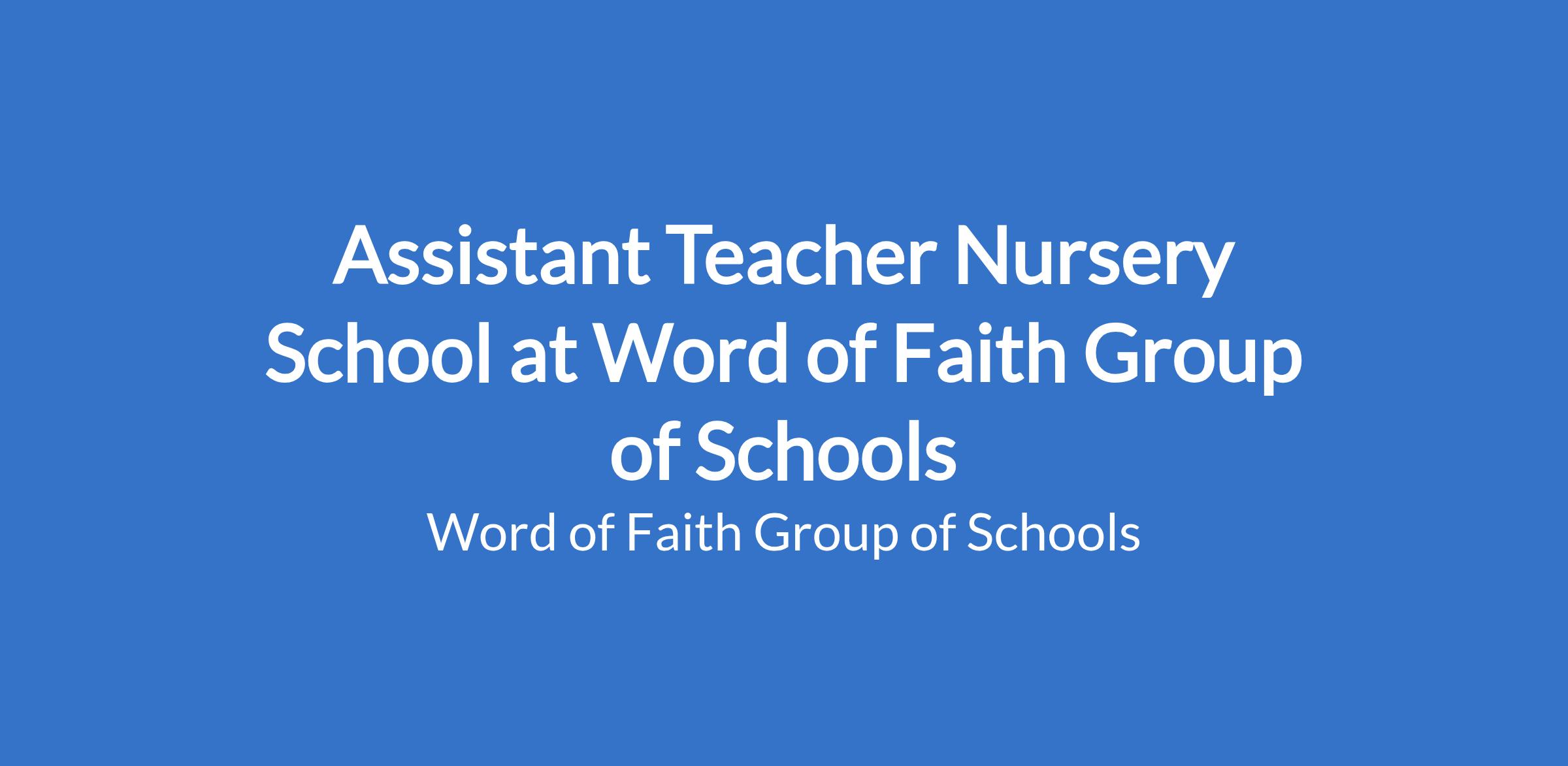 Assistant Teacher Nursery School at Word of Faith Group of Schools
