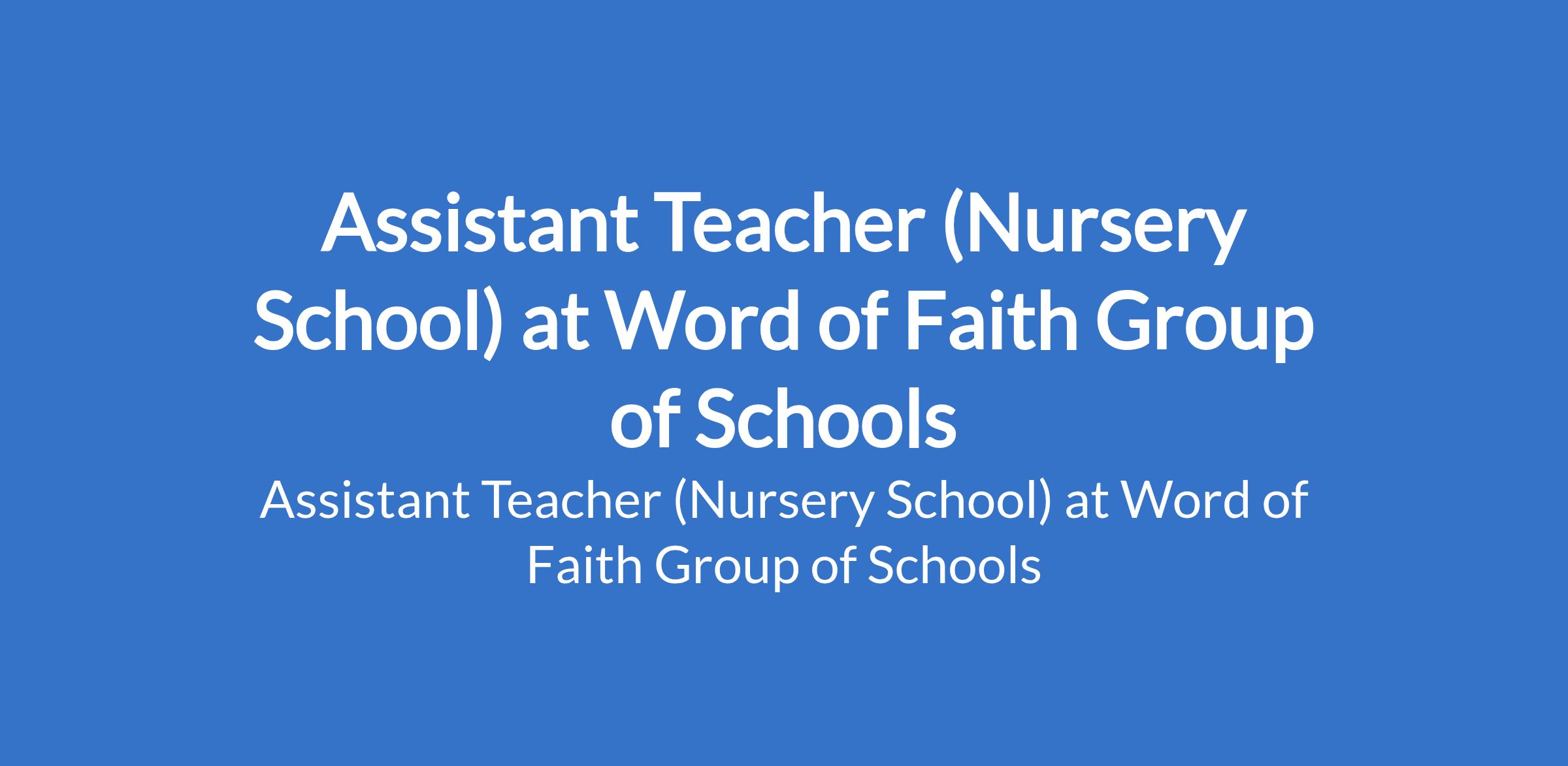 Assistant Teacher (Nursery School) at Word of Faith Group of Schools