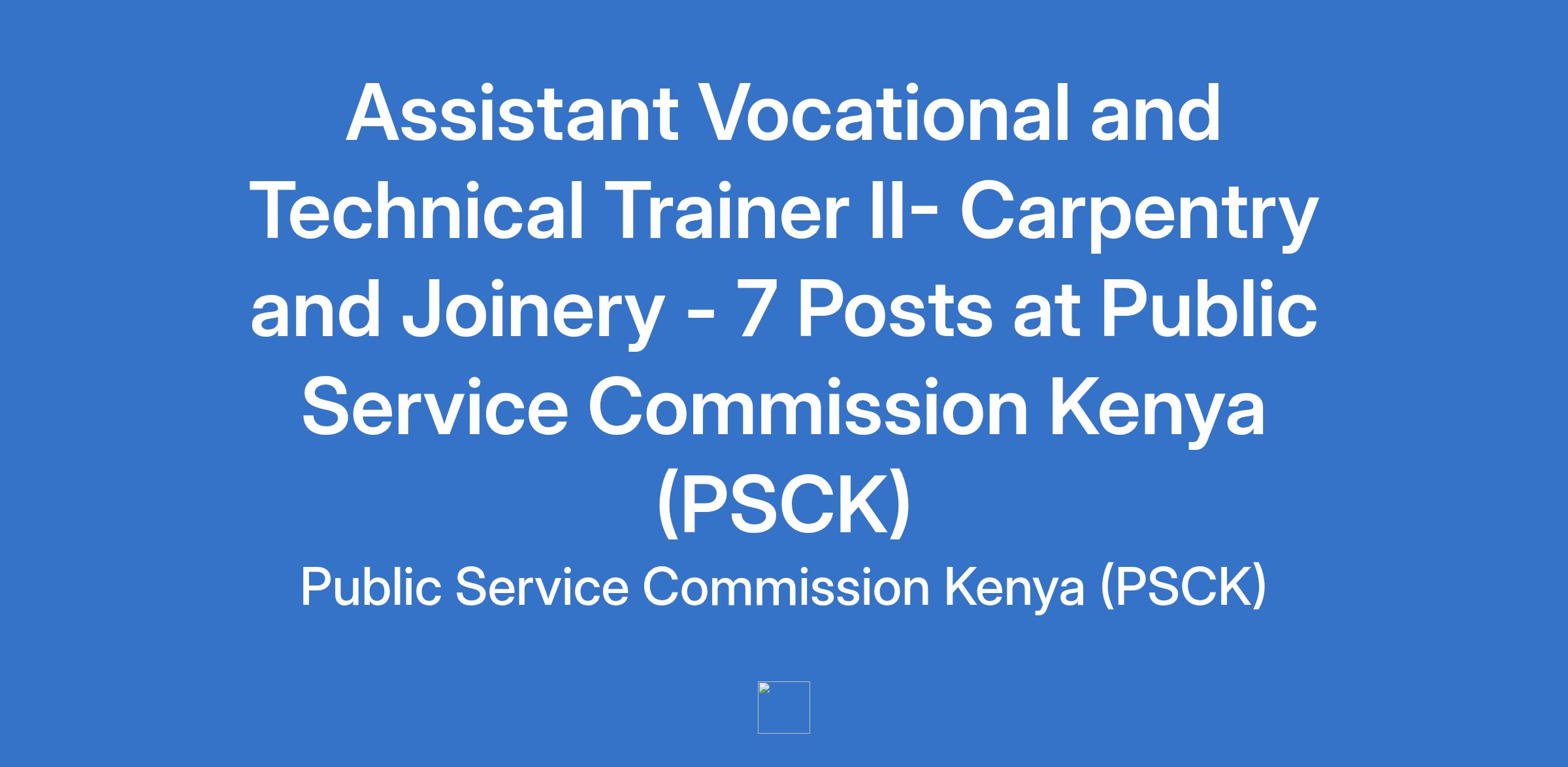 Diploma in Carpentry and Joinery or equivalent and relevant qualification; and a Diploma in Education/ Diploma Technical Trainer Education from a recognized Institution;