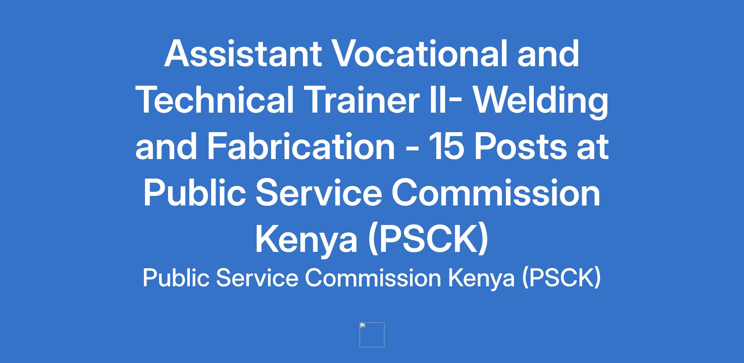 Diploma in Welding and Fabrication or equivalent and relevant qualification; and a Diploma in Education/ Diploma Technical Trainer Education from a recognized Institution;