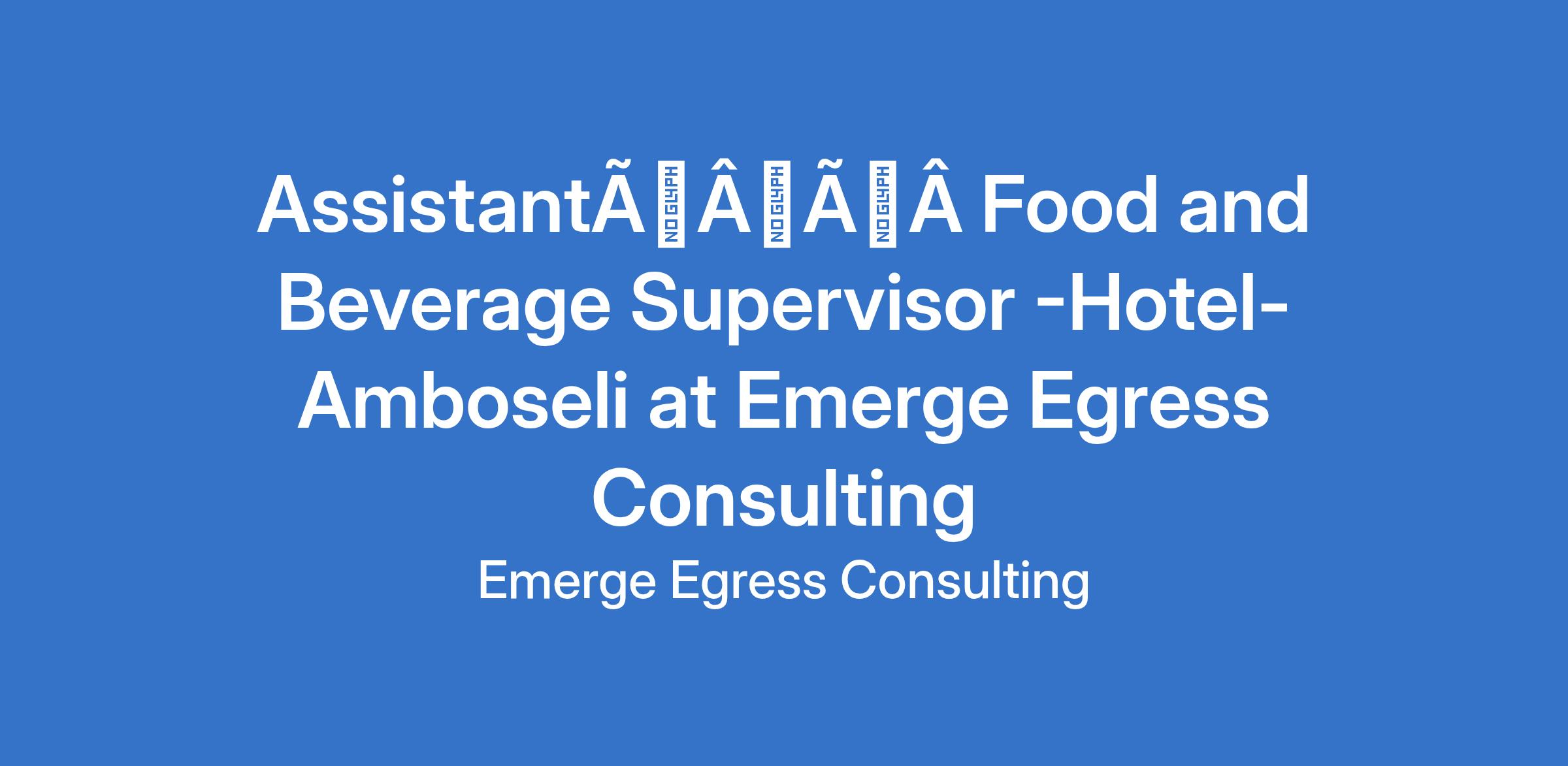 Assistant Food and Beverage Supervisor -Hotel- Amboseli at Emerge Egress Consulting