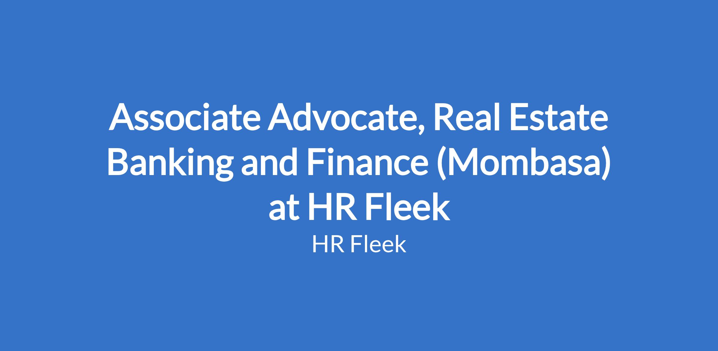 Associate Advocate, Real Estate Banking and Finance (Mombasa) at HR Fleek