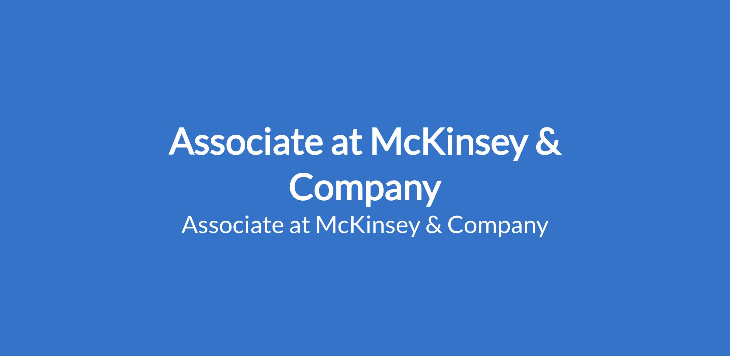 Associate at McKinsey & Company
