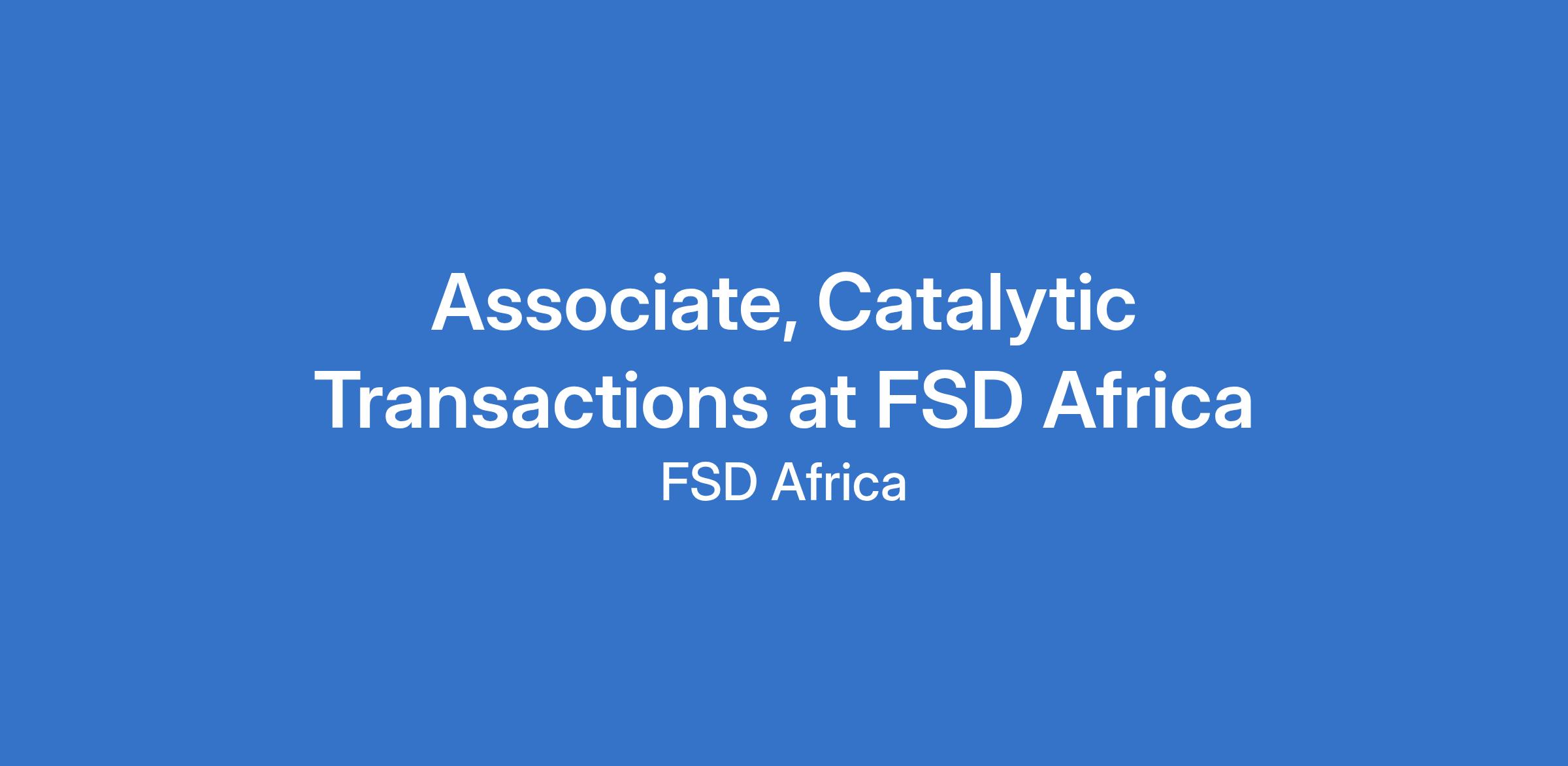 Associate, Catalytic Transactions at FSD Africa