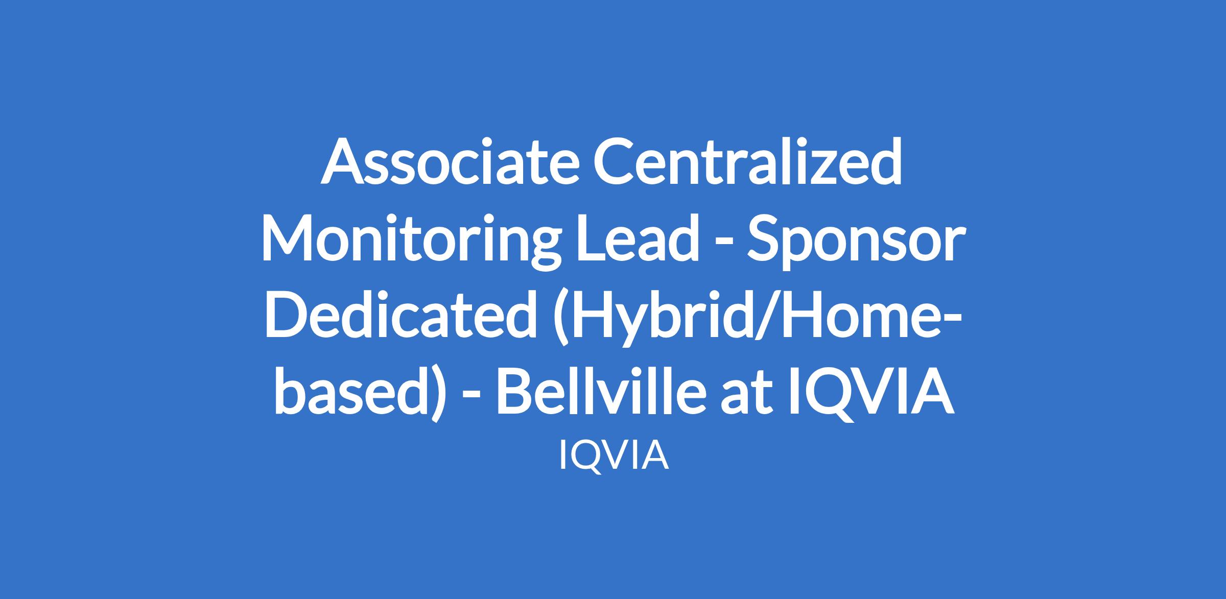 Associate Centralized Monitoring Lead - Sponsor Dedicated (Hybrid/Home-based) - Bellville at IQVIA