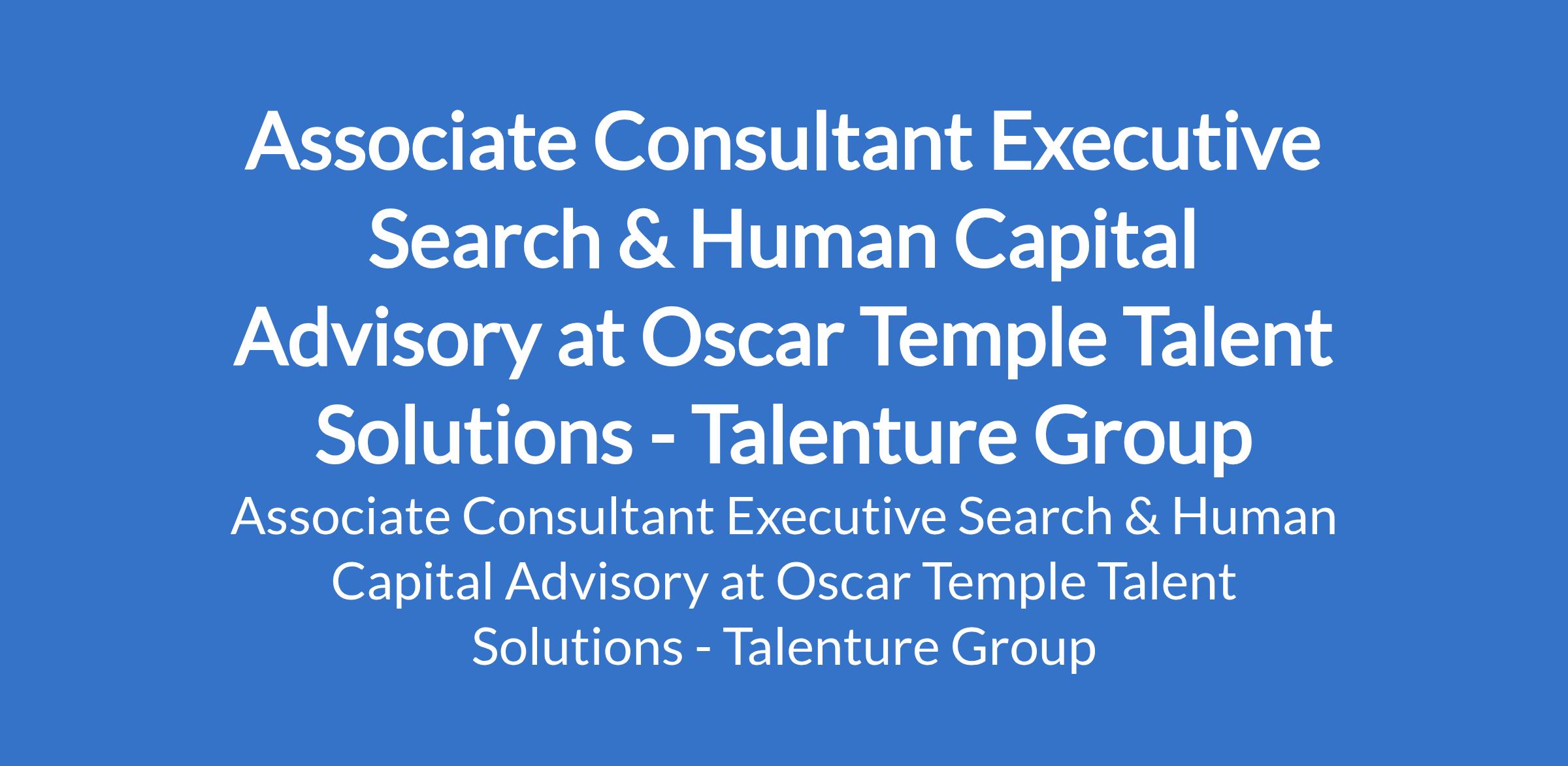 Talenture Group - Our client, Oscar Temple Talent Solutions is recruiting to fill the position of: Associate Consultant Executive Search & Human Capital Advisory. The position is located in Lekki, Lagos State. As an Associate Consultant, you will play a key role in delivering retained search mandates and supporting high-level advisory engagements. Interested candidates should possess a Bachelors Degree with 2 - 3 years of experience in consulting, professional services, HR, research or recruitment and existing knowledge in financial services, banking, insurance, investment.
